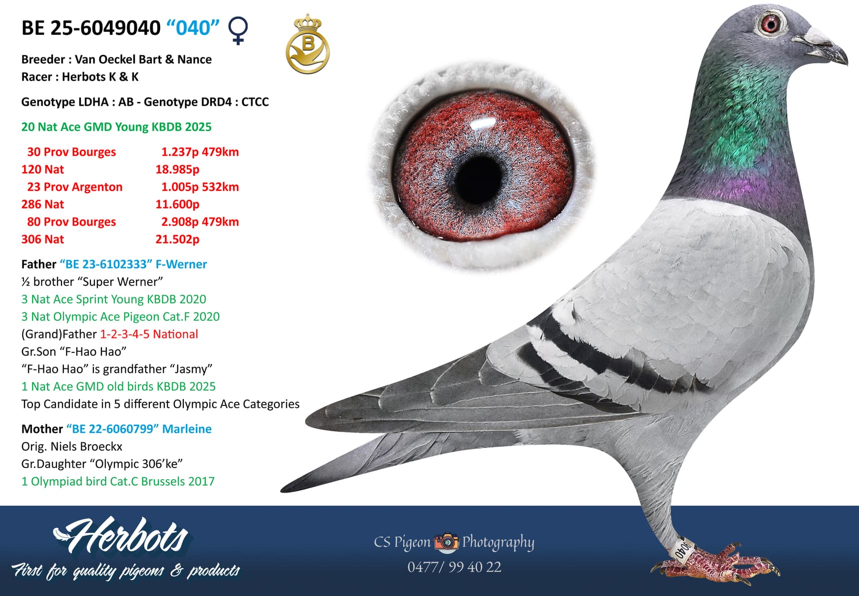 Dit is een 100% Herbots duif maar vooral een kleinzoon van superkweker “Geof”