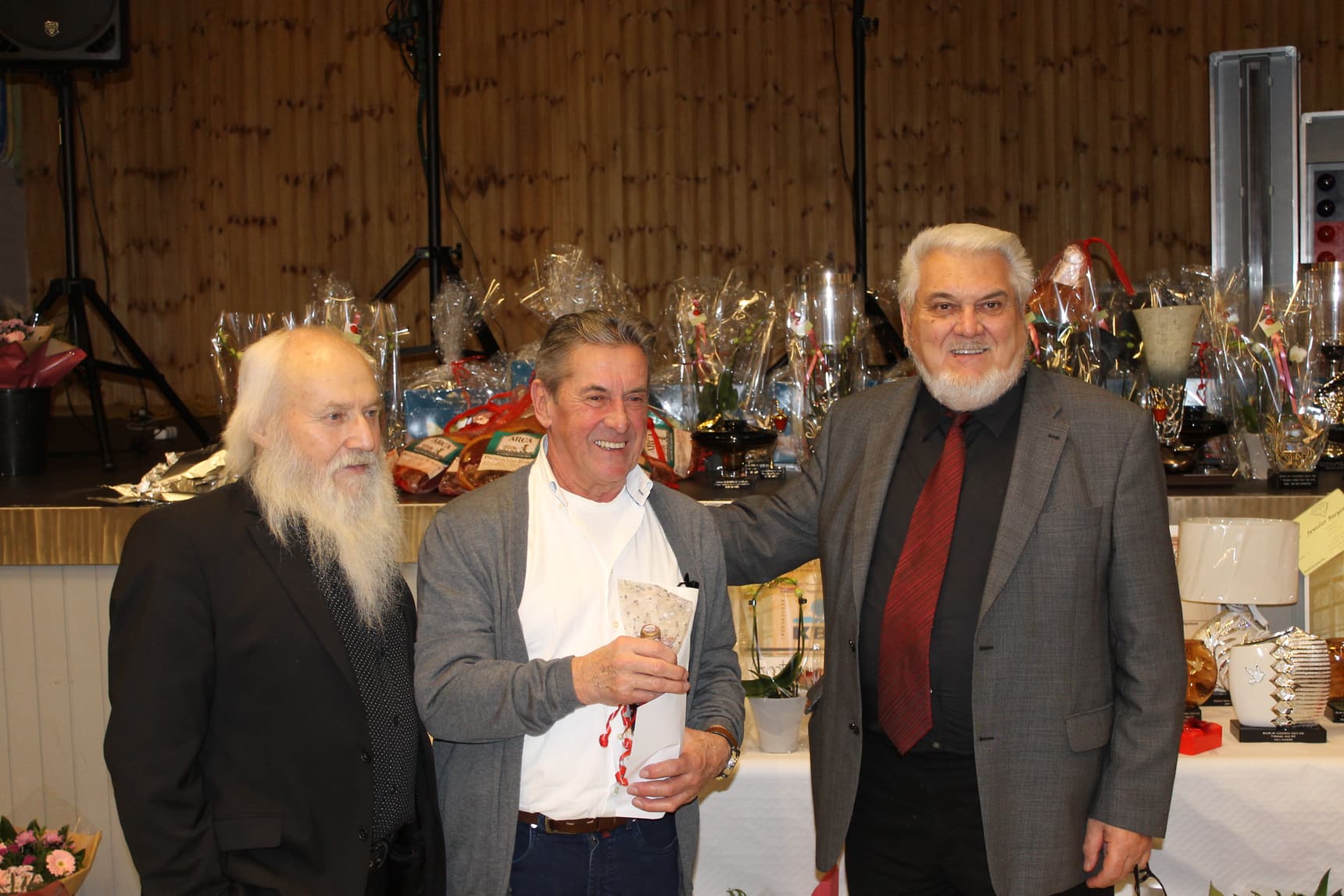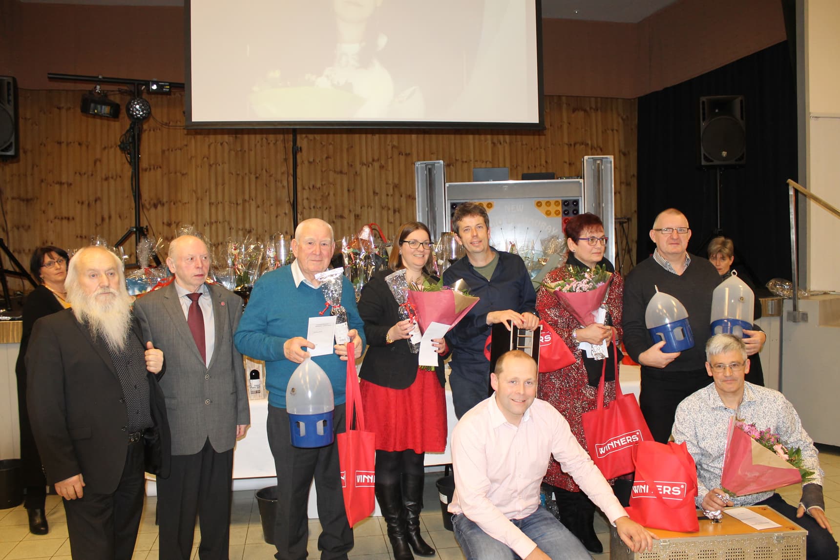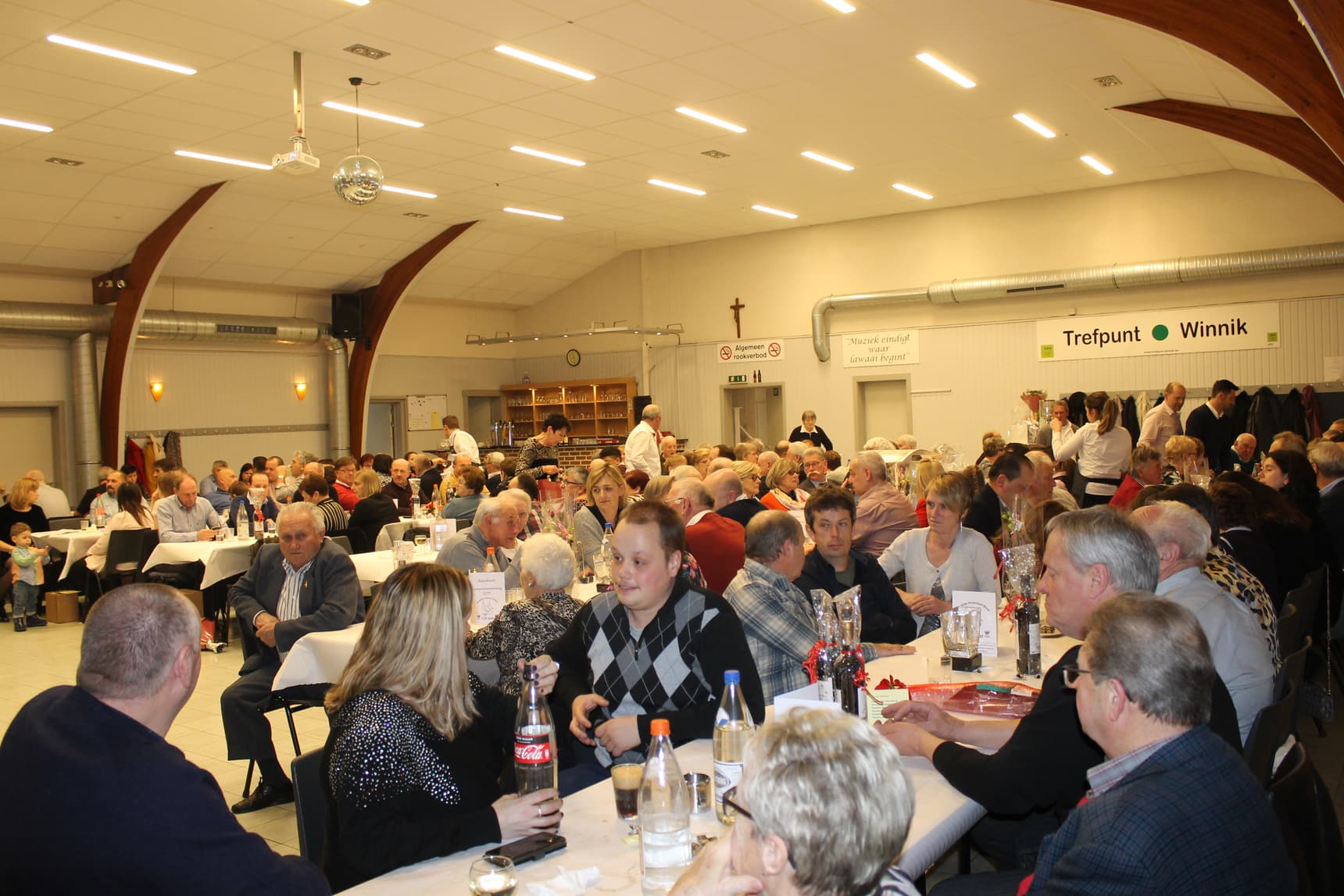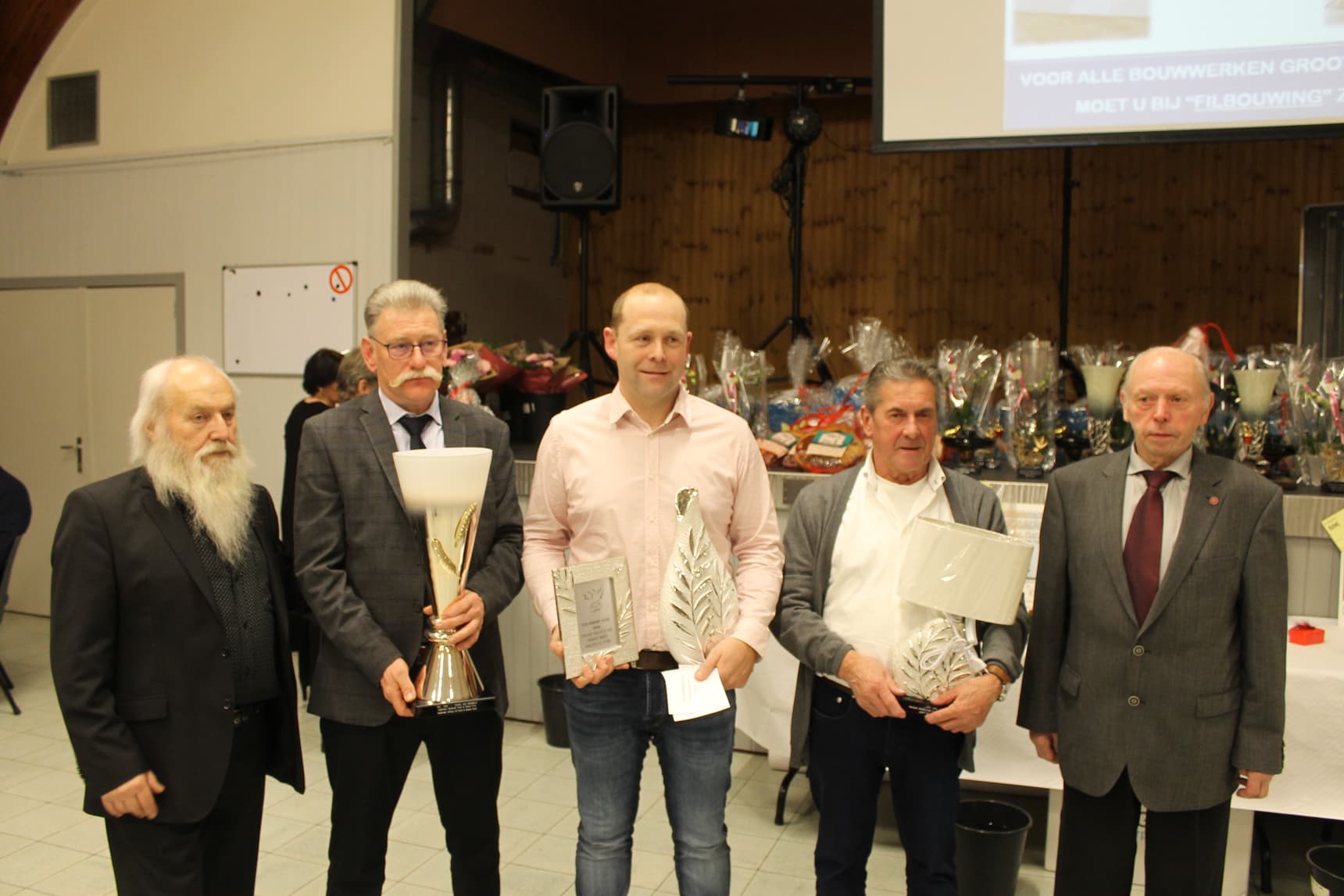 De ongeveer 180 aanwezigen (jawel, we spreken hier van een lokaal kampioenenfeest) genieten van zowel het culinaire, het ceremoniële als van het amicale aspect van deze avond, alles tot in de puntjes verzorgd en strak en goed in de regie gezet door het bestuur.  Namen noemen ?  Eigenlijk is het overbodig want het is de verdienste van velen….maar naast Freddy kunnen we toch moeilijk.