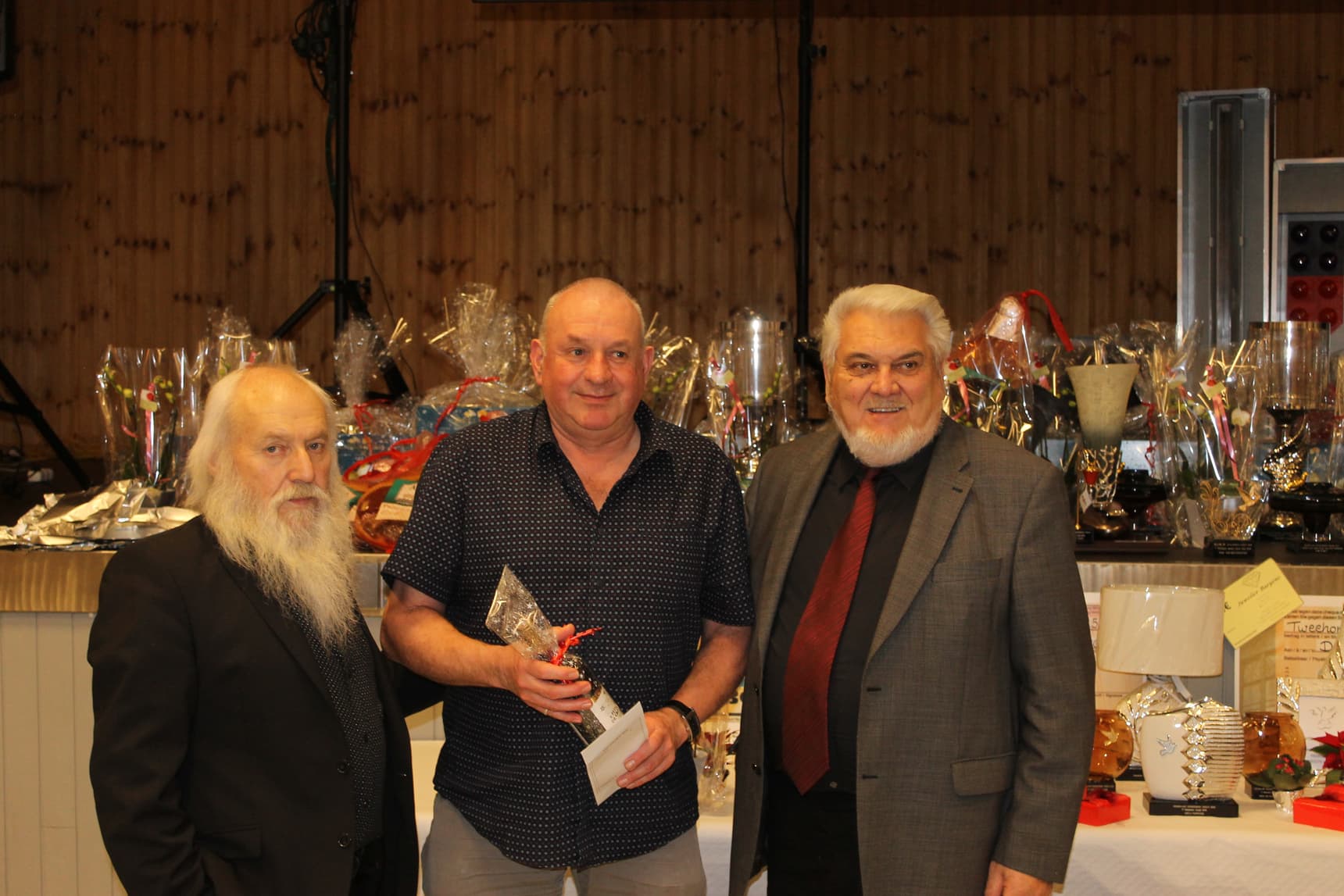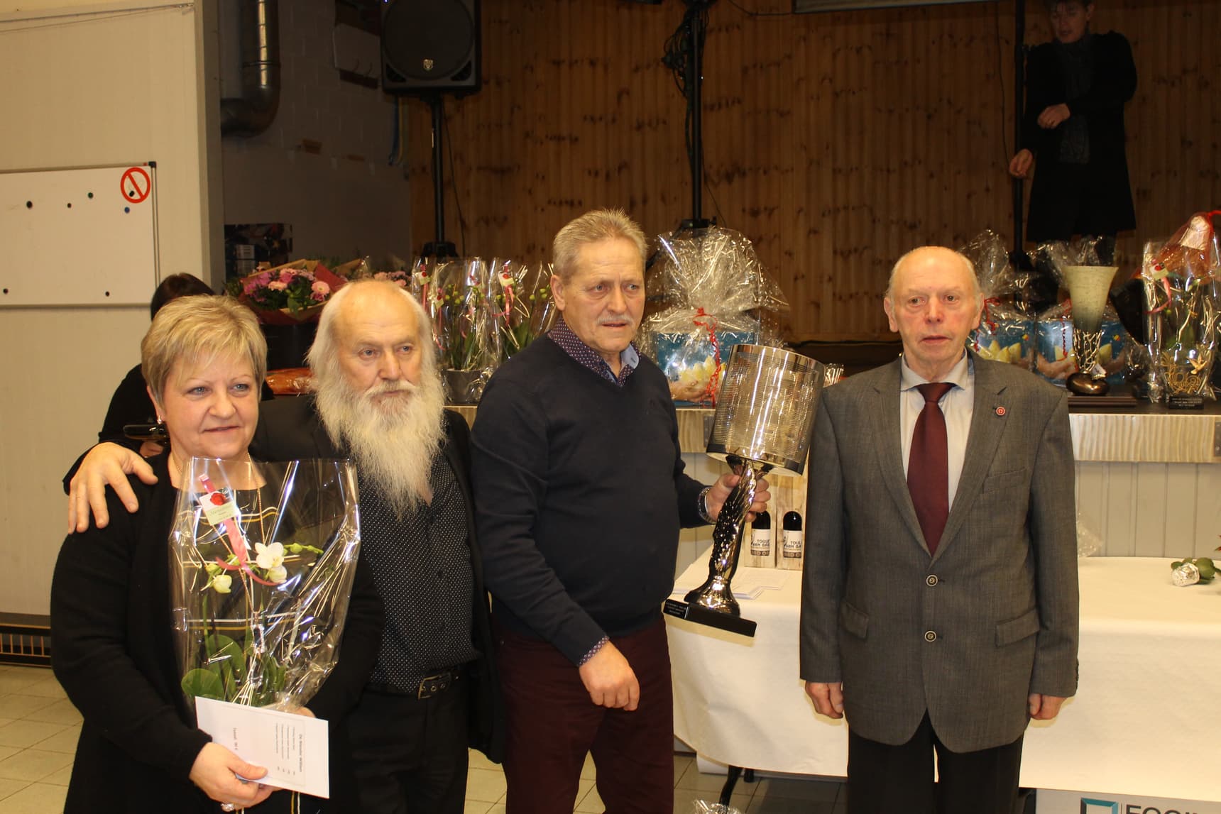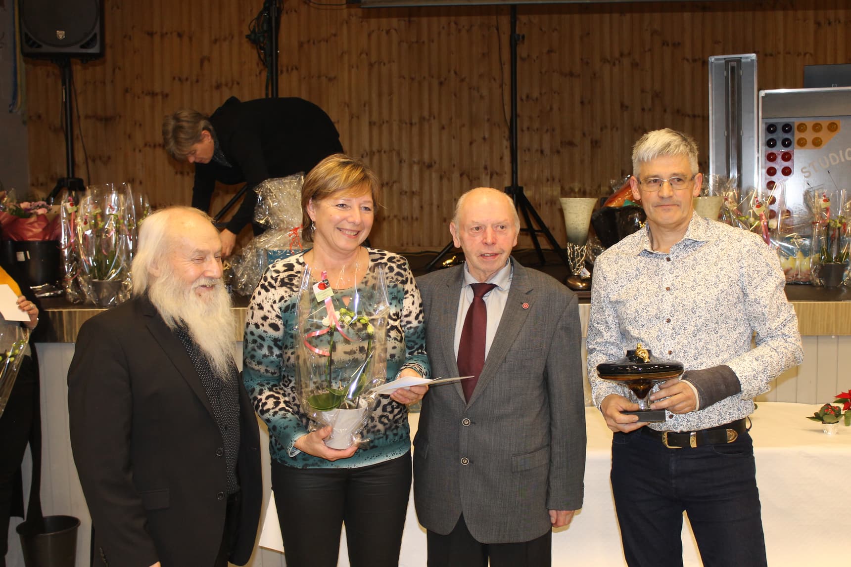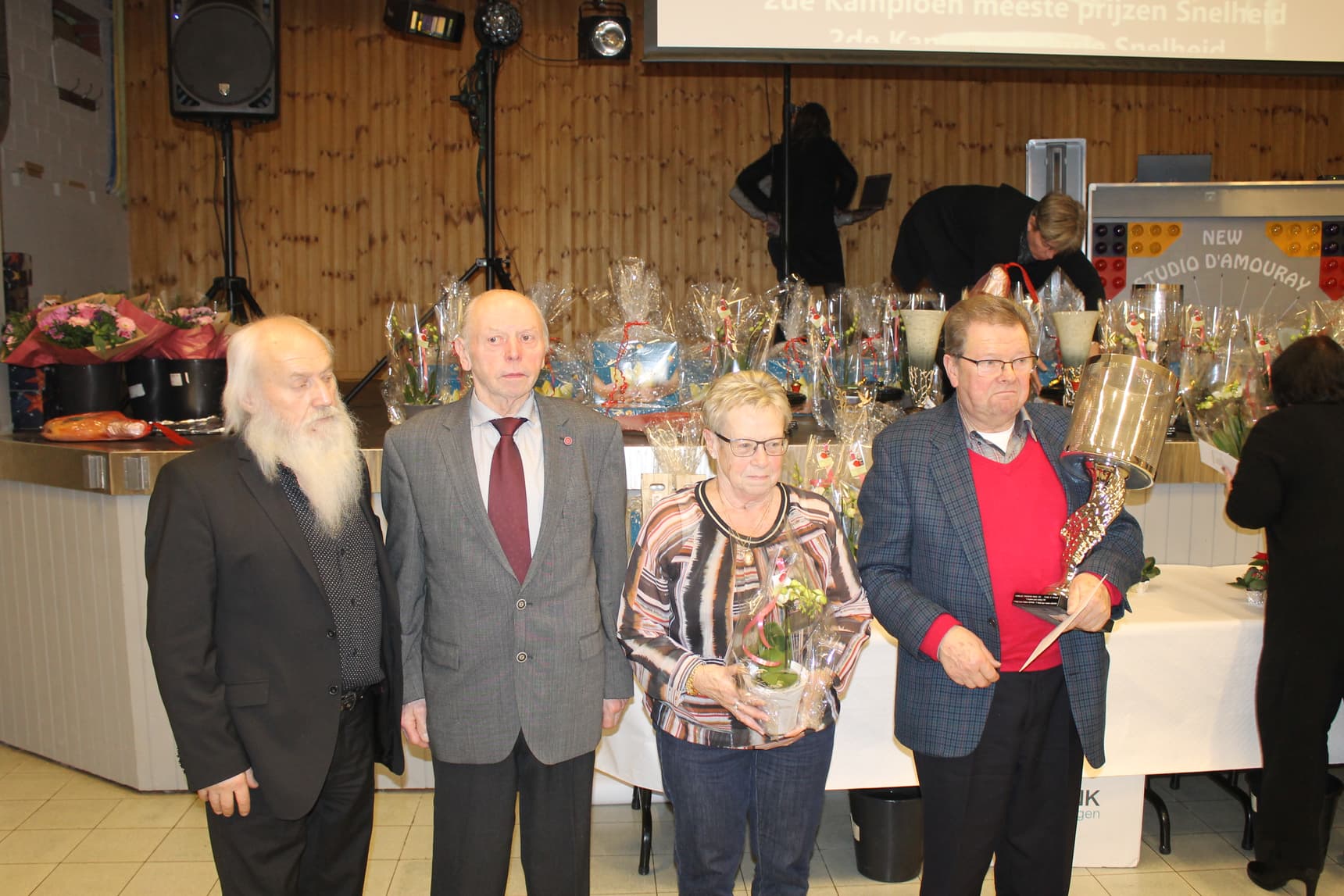 De ongeveer 180 aanwezigen (jawel, we spreken hier van een lokaal kampioenenfeest) genieten van zowel het culinaire, het ceremoniële als van het amicale aspect van deze avond, alles tot in de puntjes verzorgd en strak en goed in de regie gezet door het bestuur.  Namen noemen ?  Eigenlijk is het overbodig want het is de verdienste van velen….maar naast Freddy kunnen we toch moeilijk.