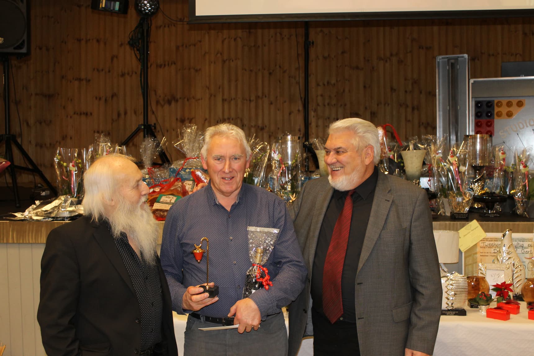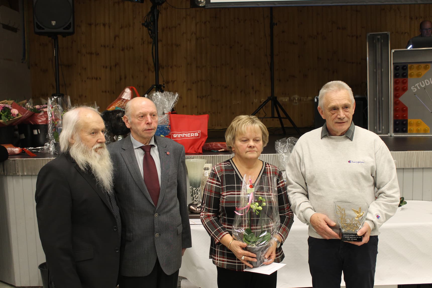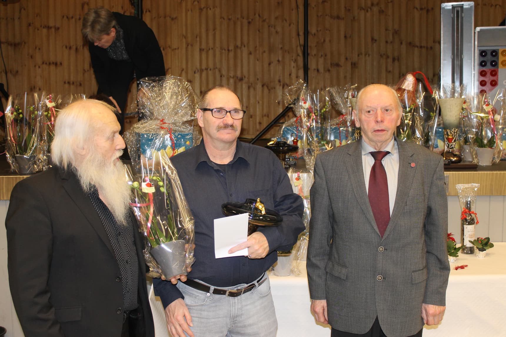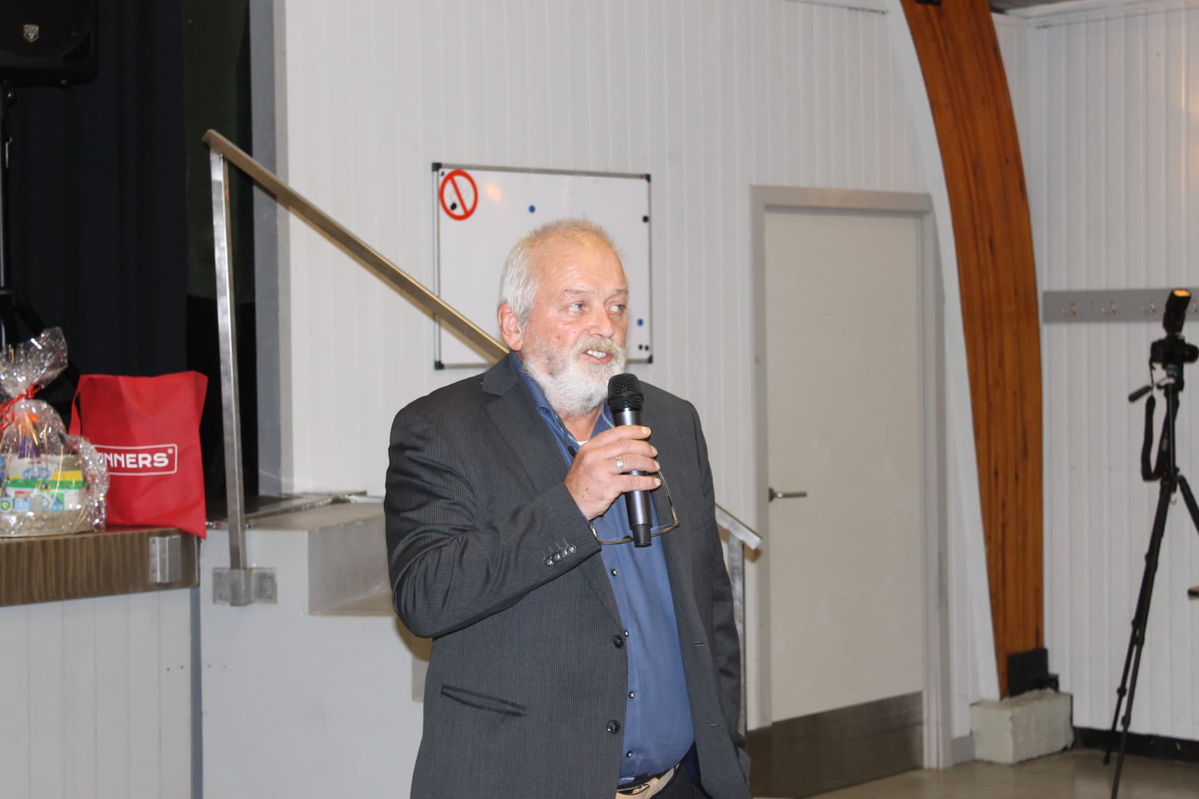 De ongeveer 180 aanwezigen (jawel, we spreken hier van een lokaal kampioenenfeest) genieten van zowel het culinaire, het ceremoniële als van het amicale aspect van deze avond, alles tot in de puntjes verzorgd en strak en goed in de regie gezet door het bestuur.  Namen noemen ?  Eigenlijk is het overbodig want het is de verdienste van velen….maar naast Freddy kunnen we toch moeilijk.