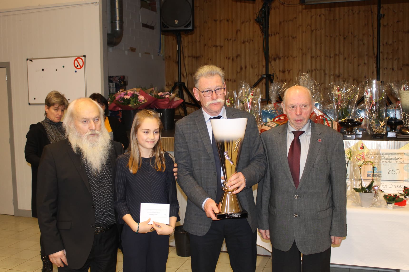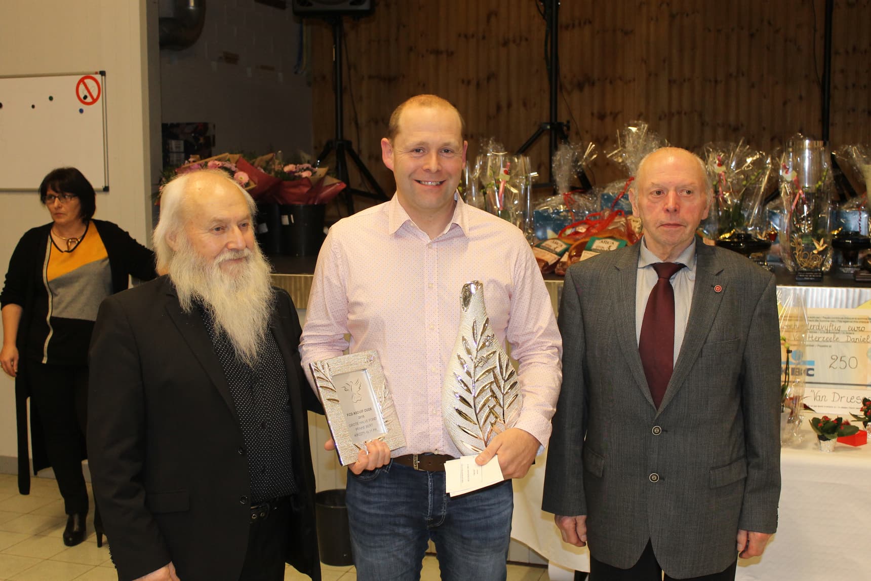 Zijn ogen schitteren…of liever “skitteren” zoals ze in Ninove zouden zeggen wanneer hij de laureaten ziet pronken met hun trofee, naturaprijs enz….  En werd hij niet wat emotioneel wanneer de jeugdprijzen werden uitgereikt ?  Jawel en terecht, ook de jeugd komt in Ninove volop aan zijn trekken.  Nu zaaien om later hopelijk te oogsten is het motto.