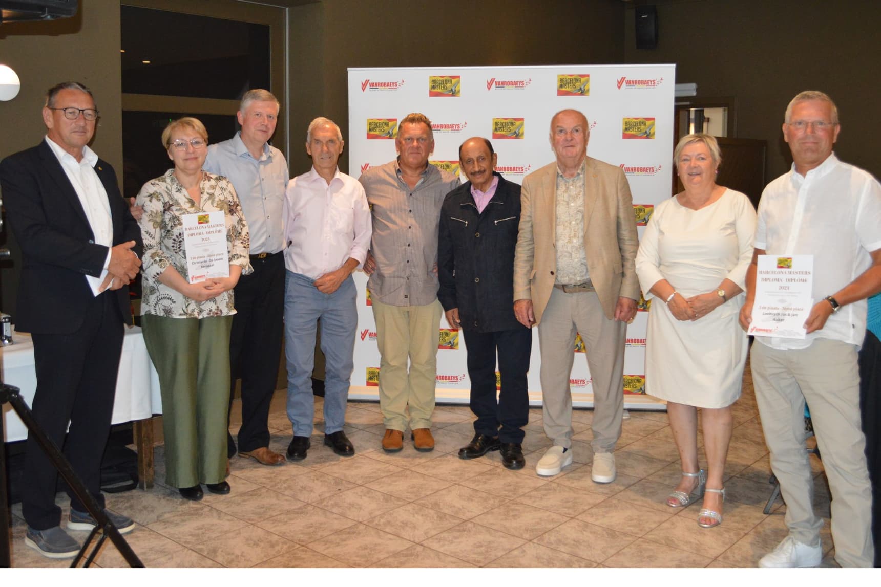 In Restaurant-Feestzaal “’t Biezemhof” te Aalter ging de huldiging door voor de verschillende kampioenen bij de Barcelona Masters. Na een uitgebreid aperitief nam voorzitter Emiel Denys bij aanvang van het banket het woord om iedereen te verwelkomen, waarbij ondermeer hulde werd gebracht aan drie nationale winnaars onder de leden : Marnix Leutenez, Yvan Haelters en Etienne Meirlaen. Tijdens zijn openingswoord vernoemde hij eveneens de laureaten bij de Barcelona Masters en verwees naar de schitterende resultaten van diverse leden in de kampioenschappen van de KBDB .