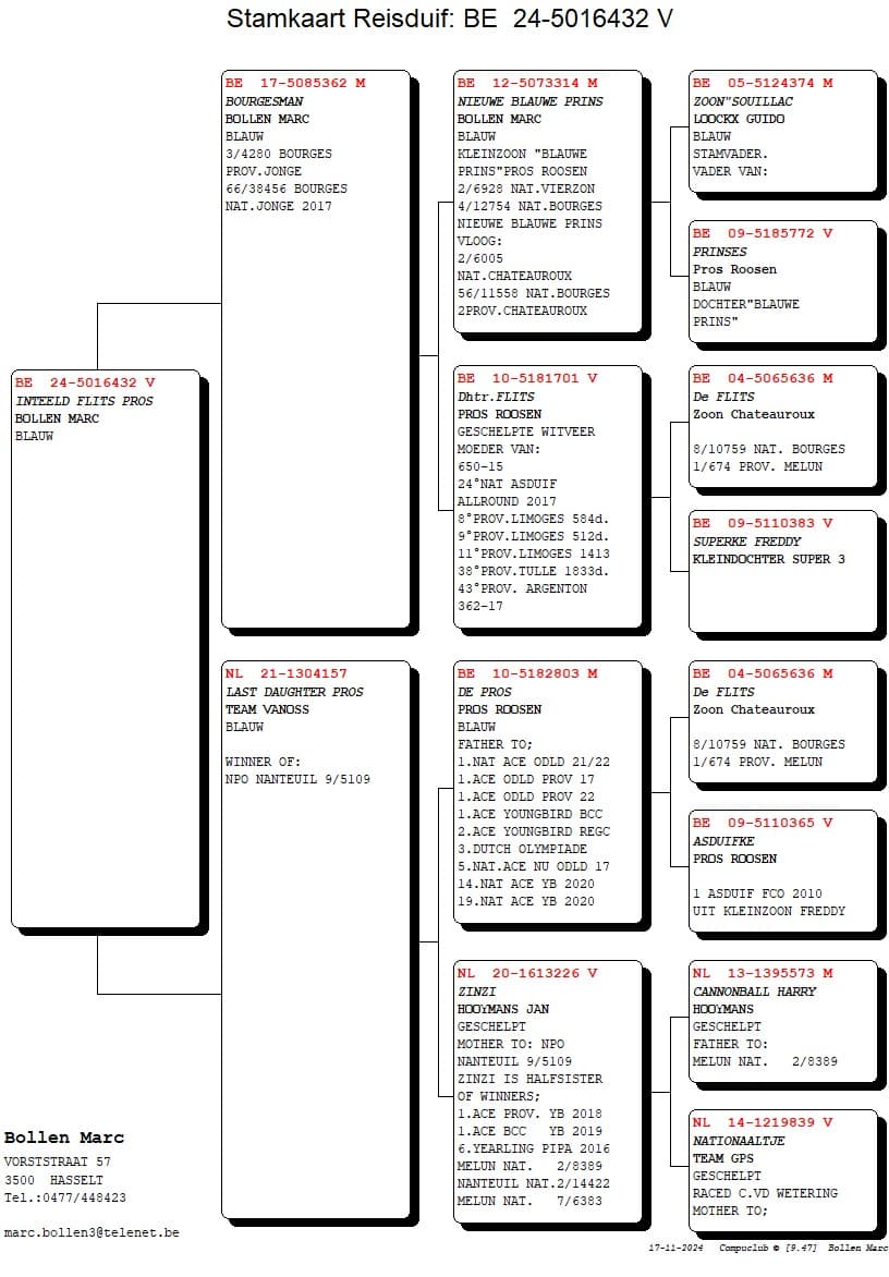Gr.V. BE 12-5007323 Topvlieger won o.a. 3 Prov Pithiviers 4.000d – 37 Nat Bourges 13.000d