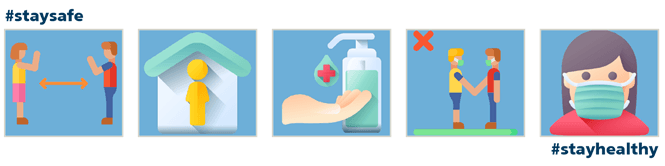Het ontsmetten van de handen, het houden van afstand (minimum 1,5 meter), ….. is zeer belangrijk.