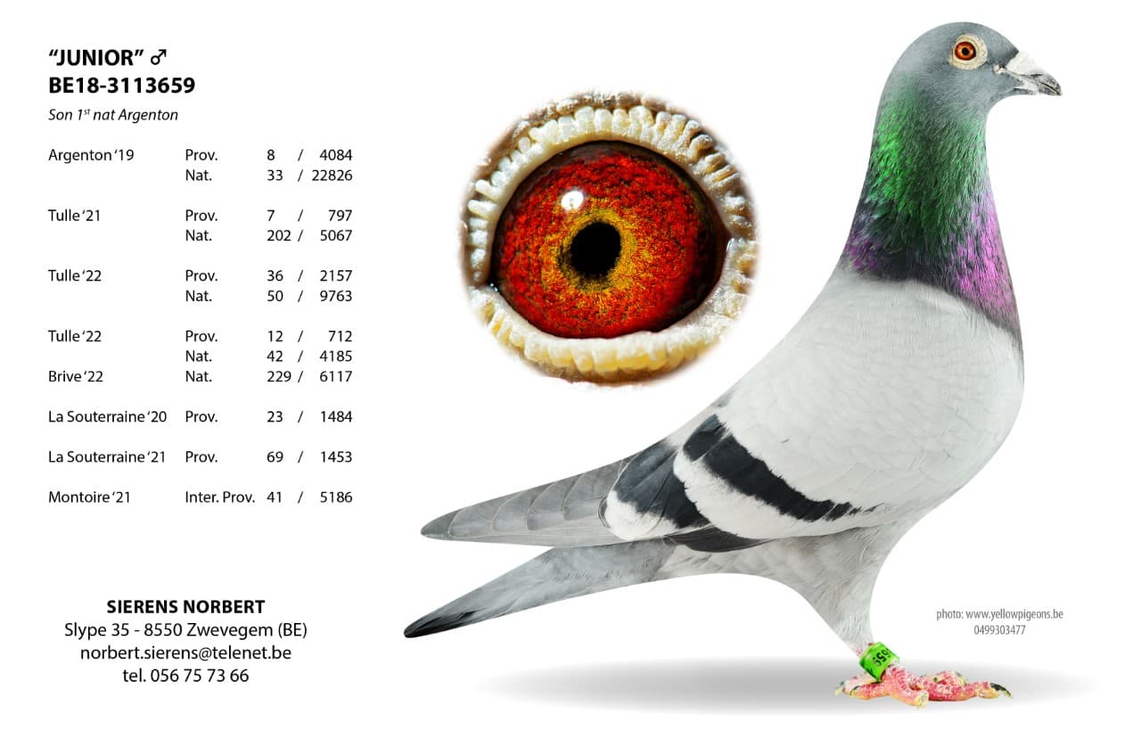 Momenteel biedt Norbert op internetverkoop Pigeon Bids Januari enkele streng geselecteerde duiven aan. Waarbij een bewezen vlieger en broers/zussen van zijn Nationaal Argenton winnaar: