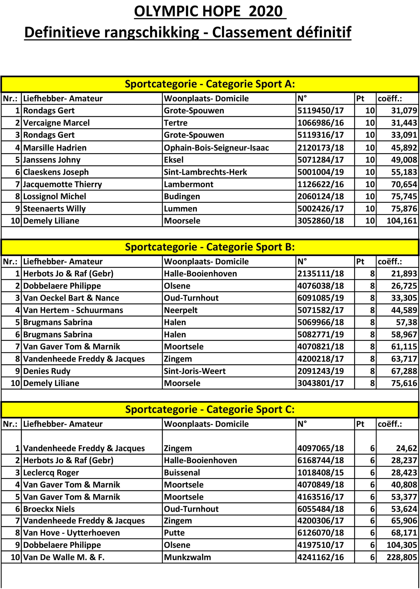 officiele rankings olympic hope 2020