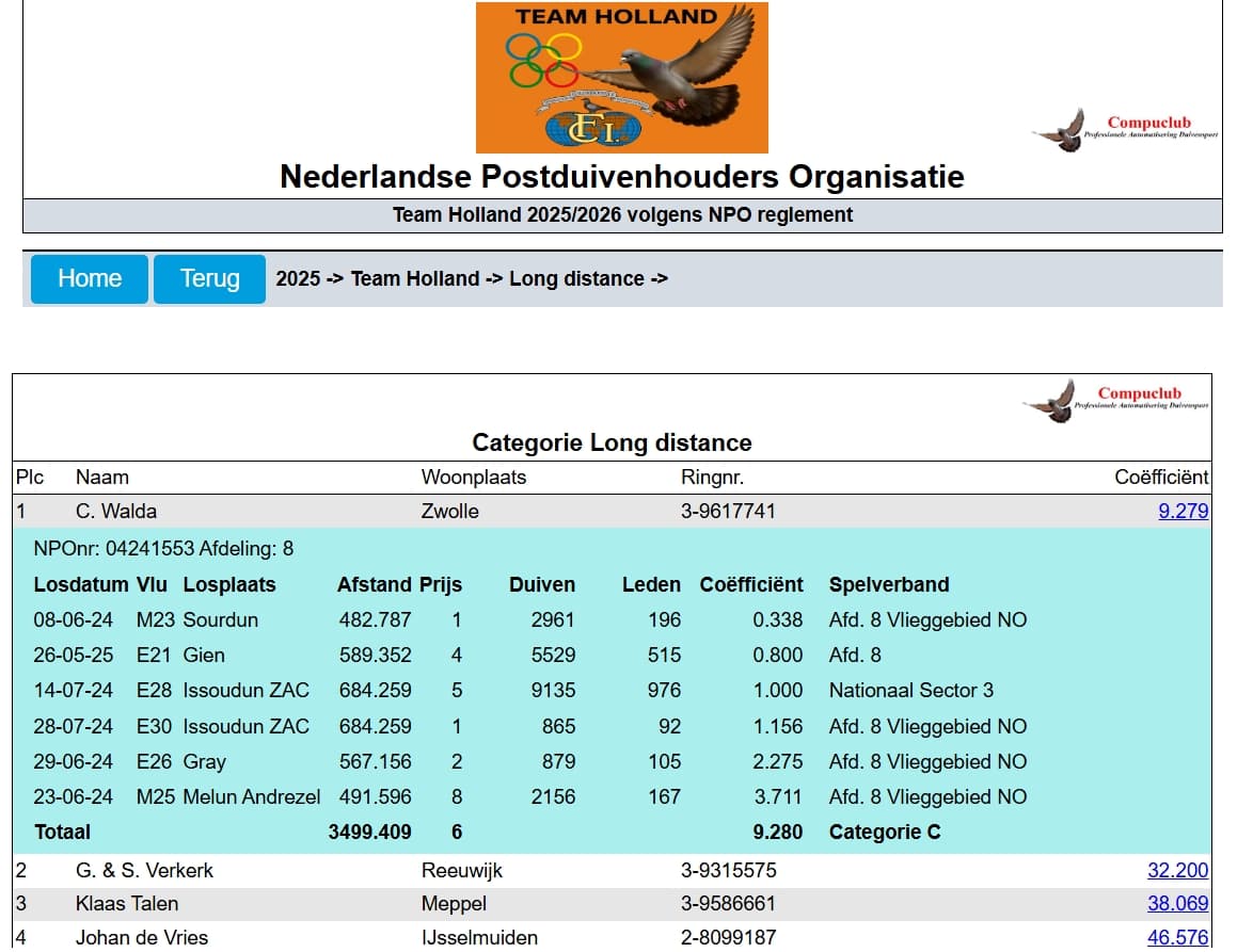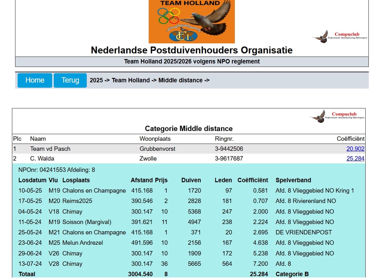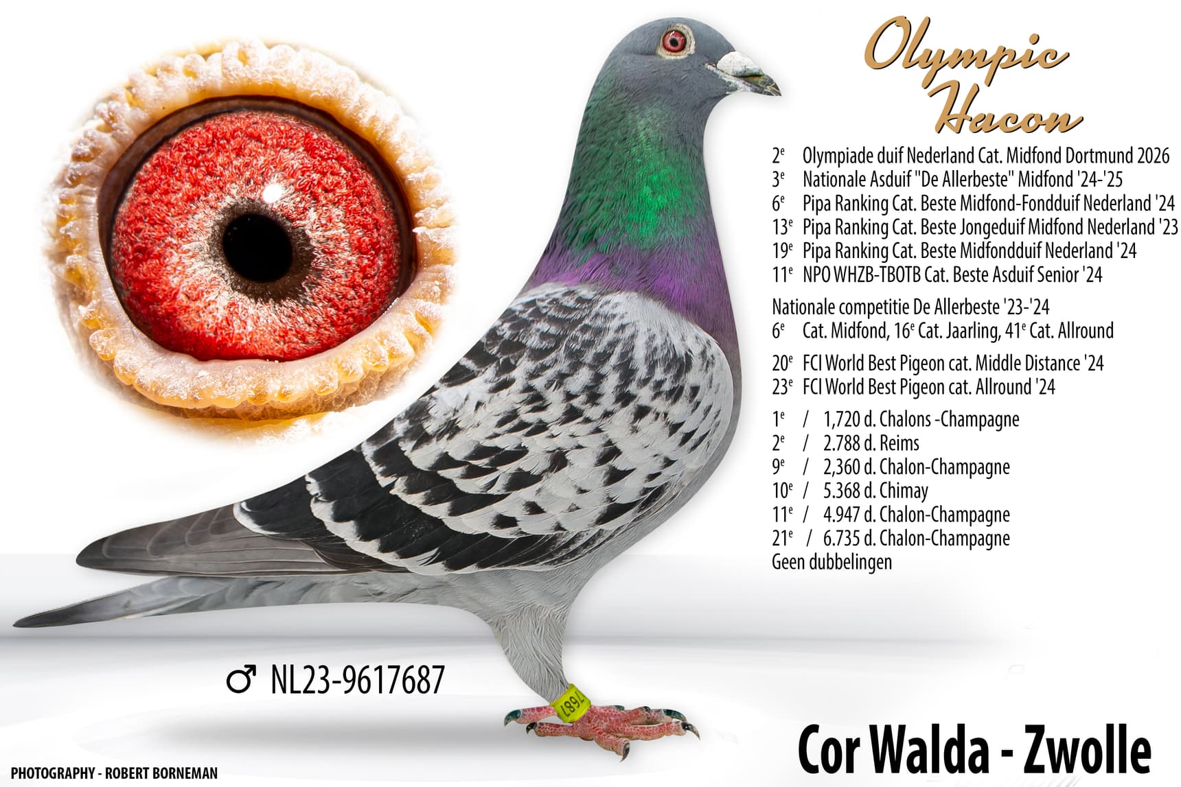 - “Olympic Hakon” (23-9617687): 2e Olympiadeduif Nederland categorie Midfond 2026 in Dortmund