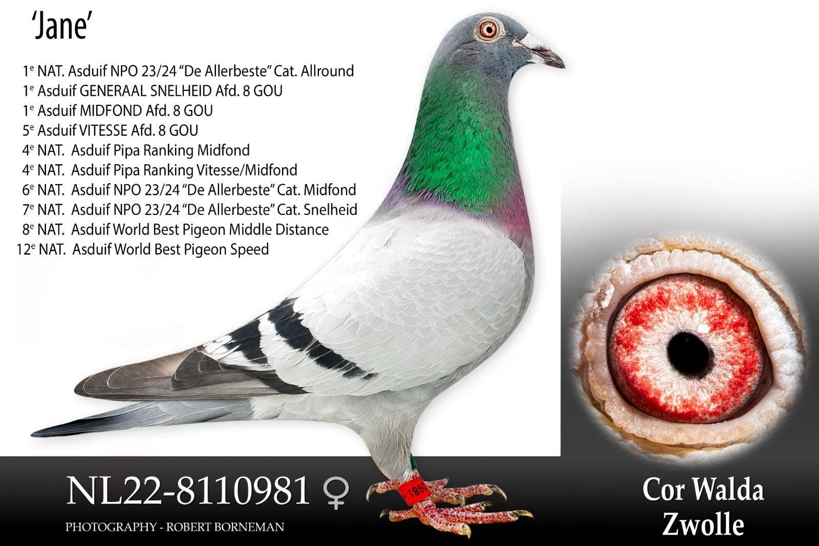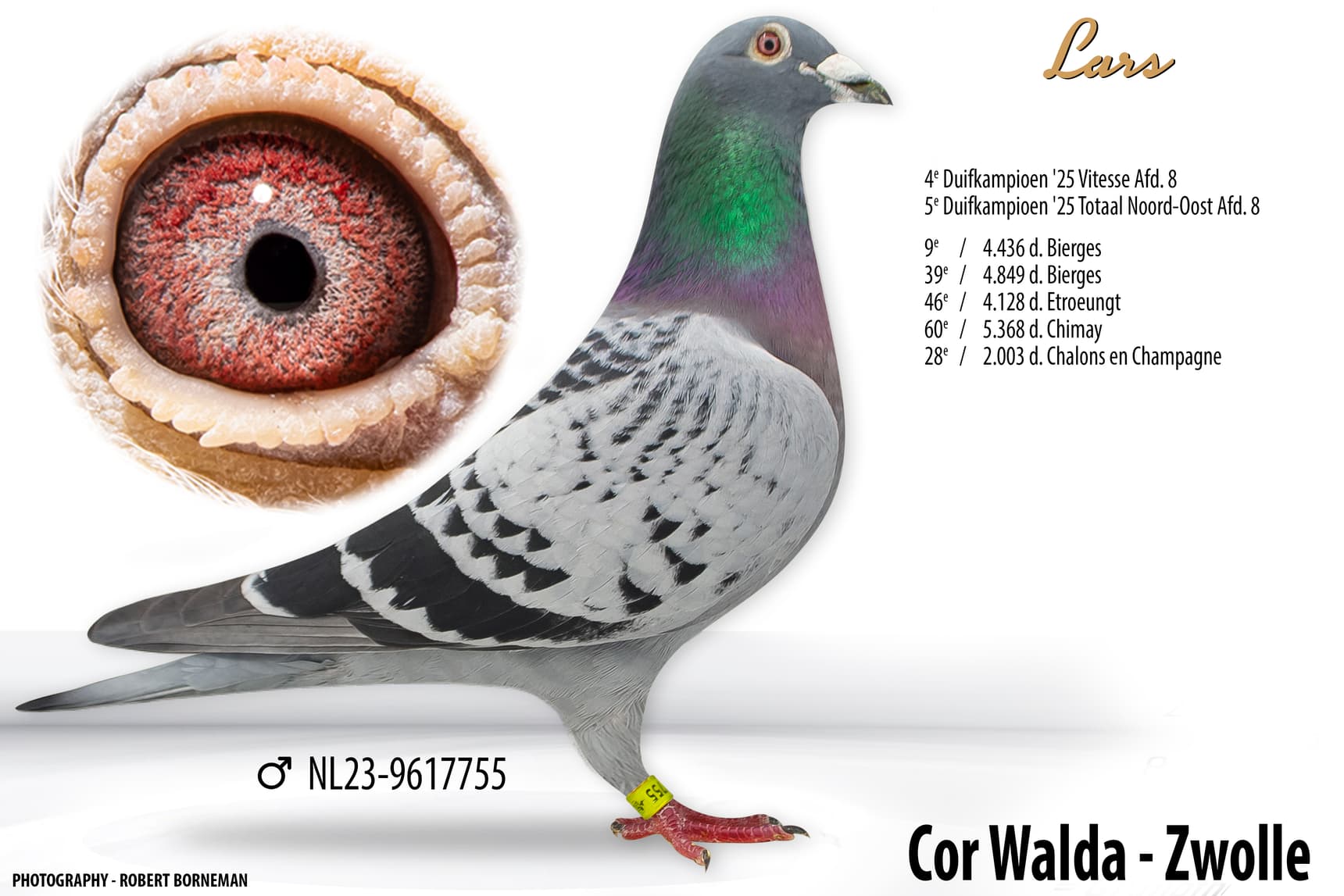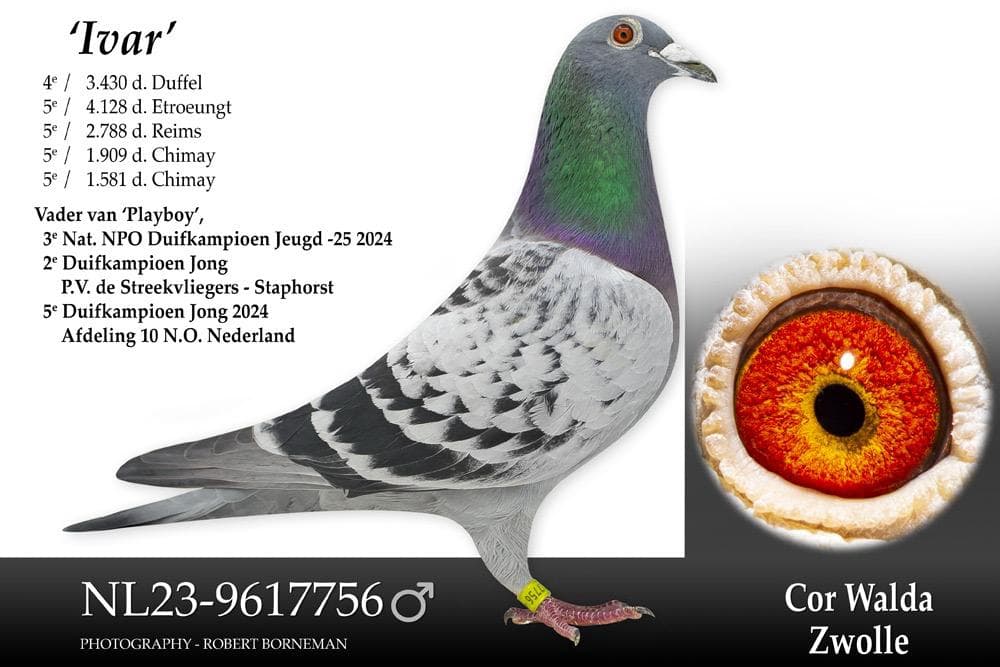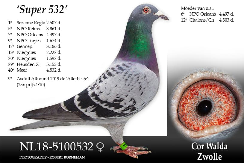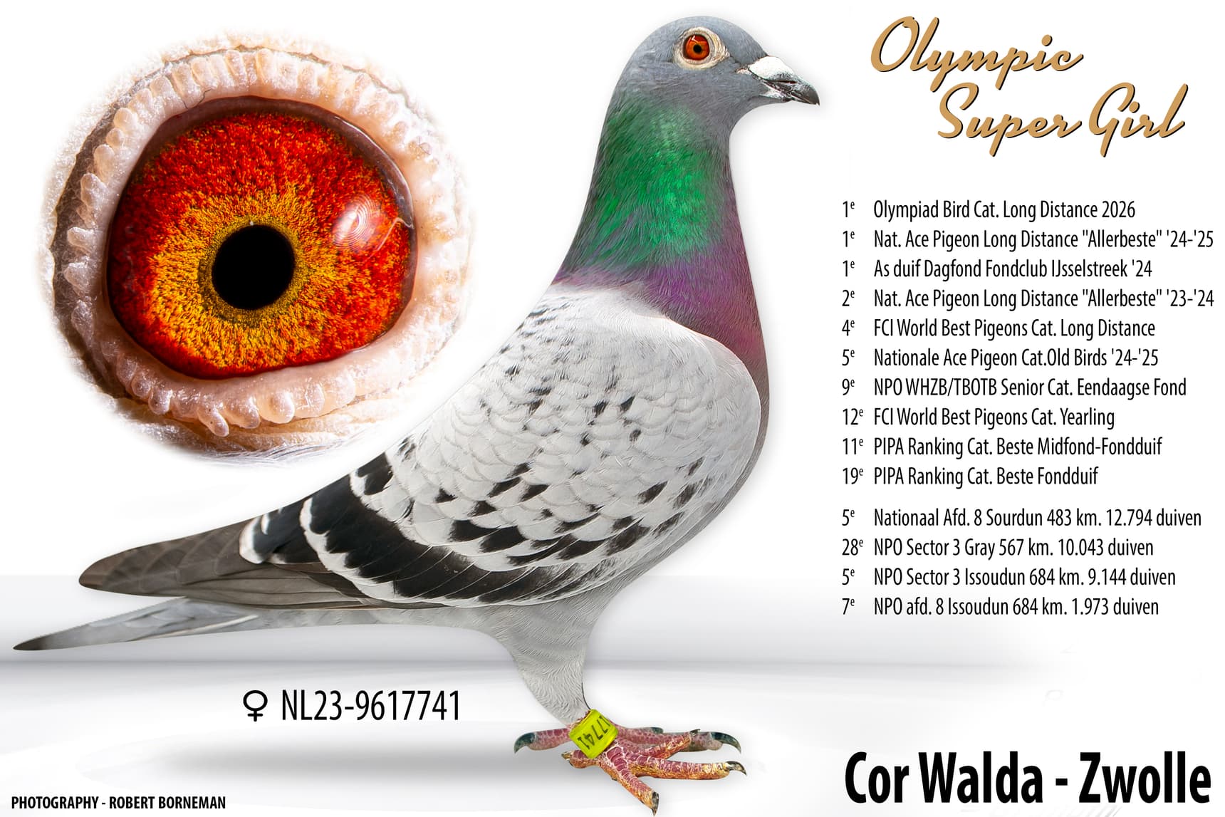 - “Olympic Super Girl” (23-9617741): 1e Olympiadeduif Nederland categorie Dagfond 2026 in Dortmund + 1e Olumpiadeduif van de Wereld Dagfond 2026 in Dortmund