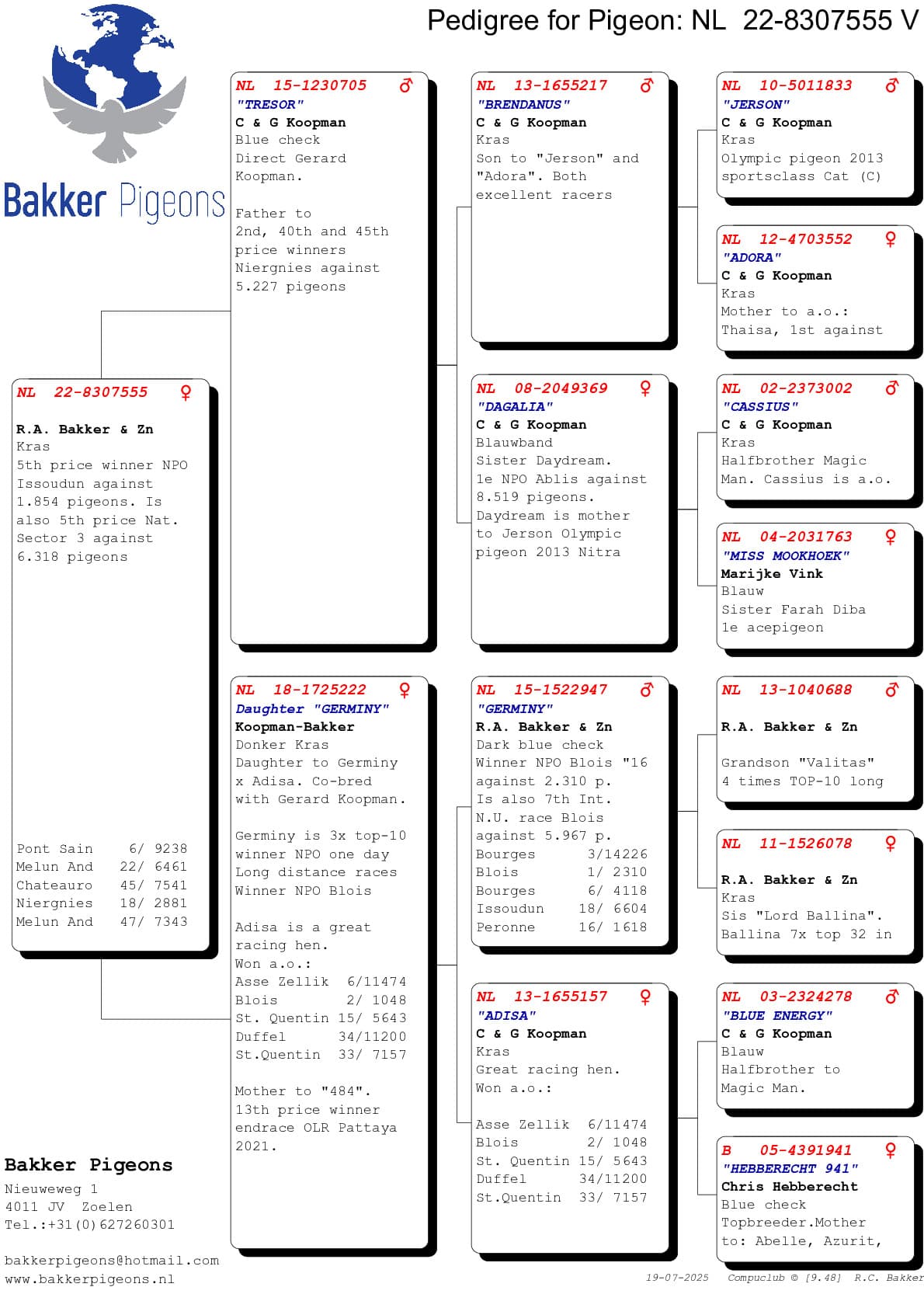 Hieronder vindt u de stambomen van de eerste vijf duiven van Ruud op deze vlucht.