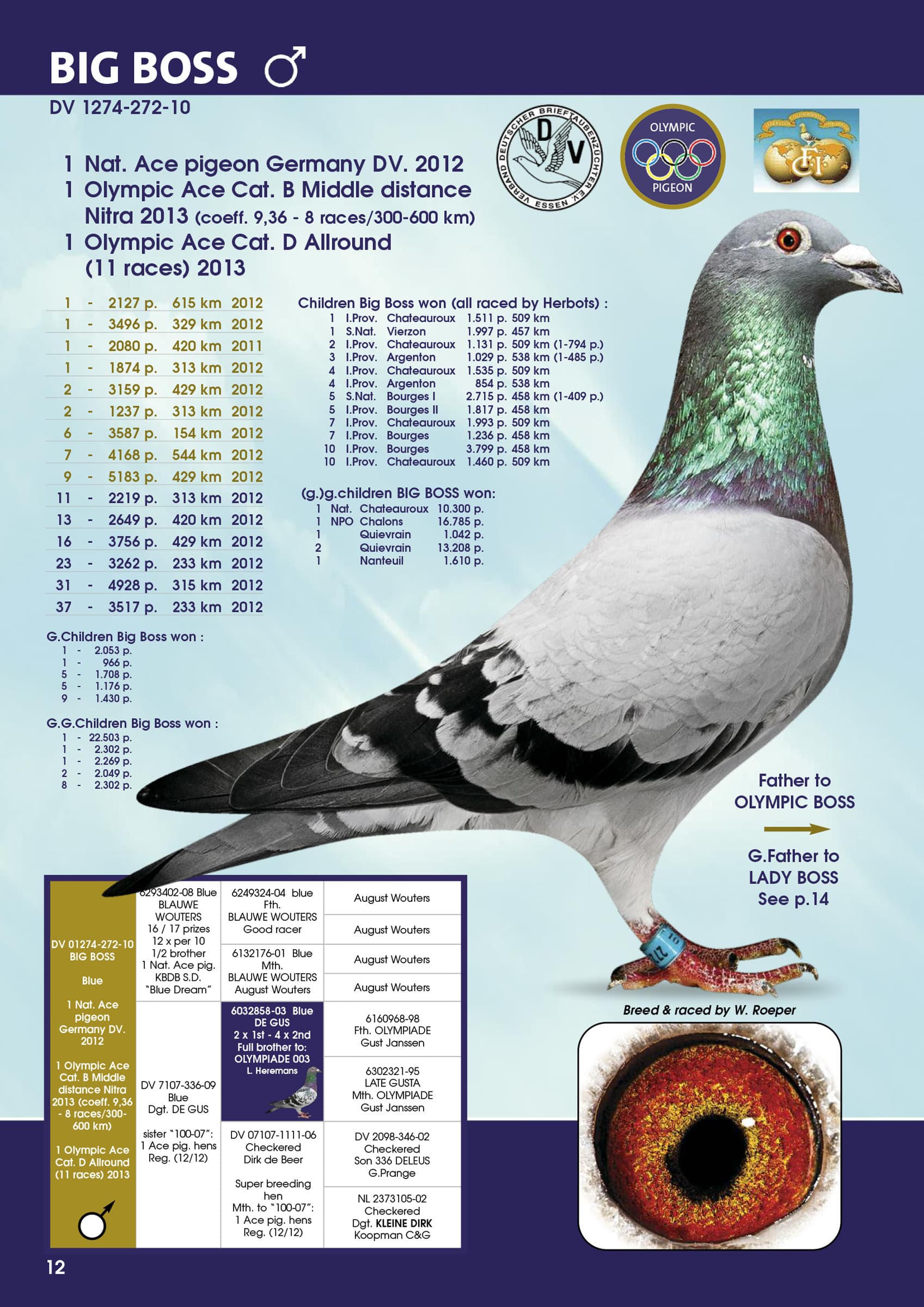 Ringnummer DV01274-10-272” … eigenaar van deze topper…Wolfgang Roeper. Enkele minuten later was Jo al in gesprek met Wolfgang en de deal werd gesloten. Enkele dagen later zat “Der 272” al op het kweekhok in Halle-Booienhoven en werd omgedoopt tot “Big Boss”.