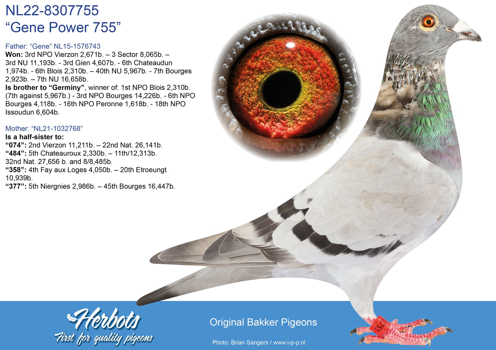 "Germiny". Een fantastische racer, vooral op de lange afstand NPO-wedstrijden. Hij won o.a.: