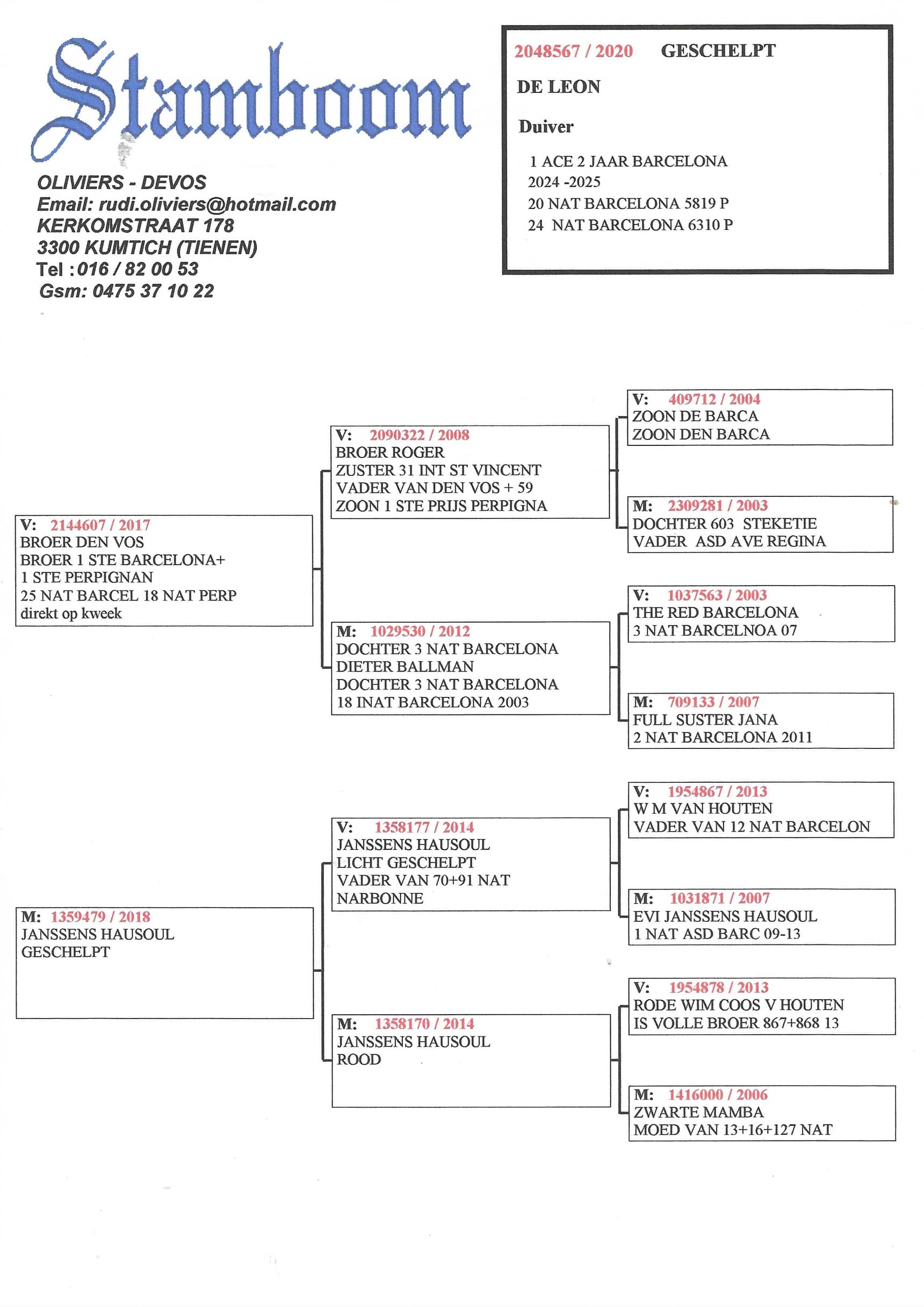 Zoon van “322/08” Broer Roger x “530/12” Dochter 3 Nat Barcelona Dieter Ballman