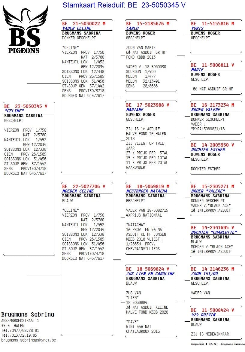 Dochter van “919/18” Nestbroer Natacha die 5 Nat Asduif halve fond KBDB 2018 werd x “824/18” Zus Lien 3de Nat Asduif halve fond KBDB 2020.