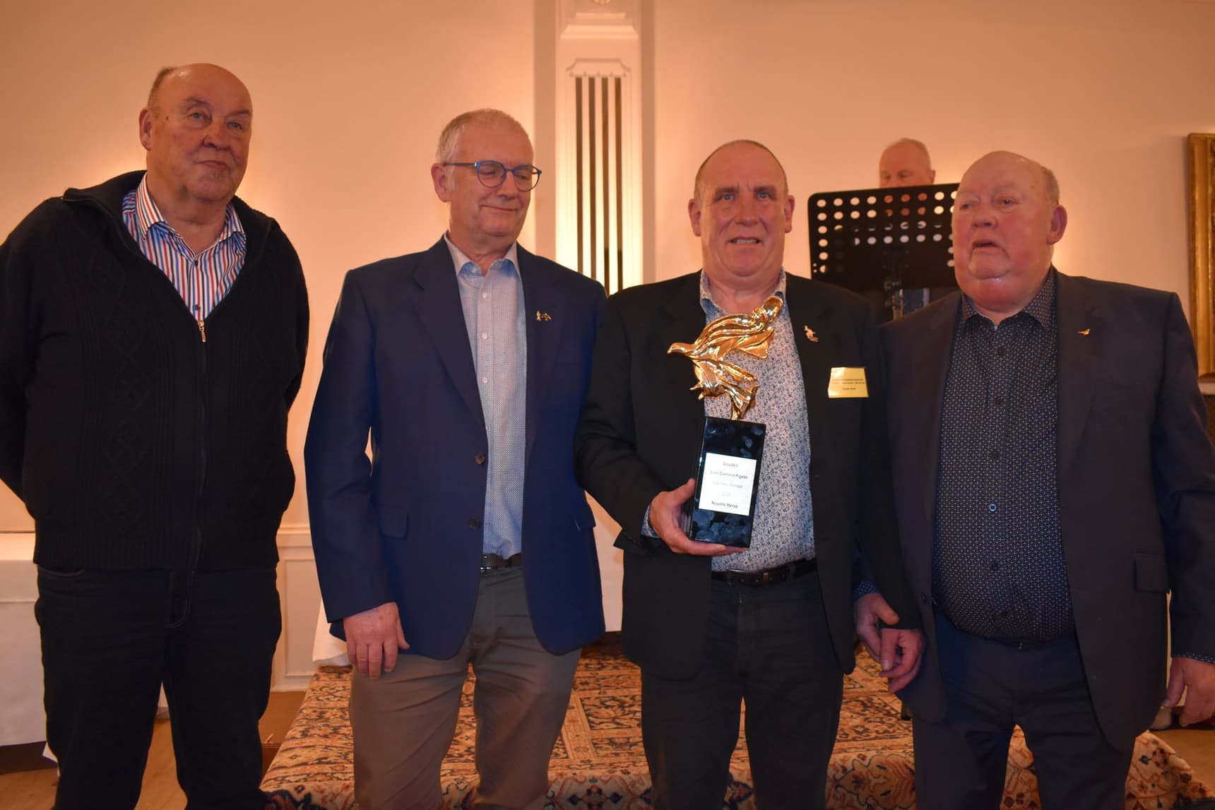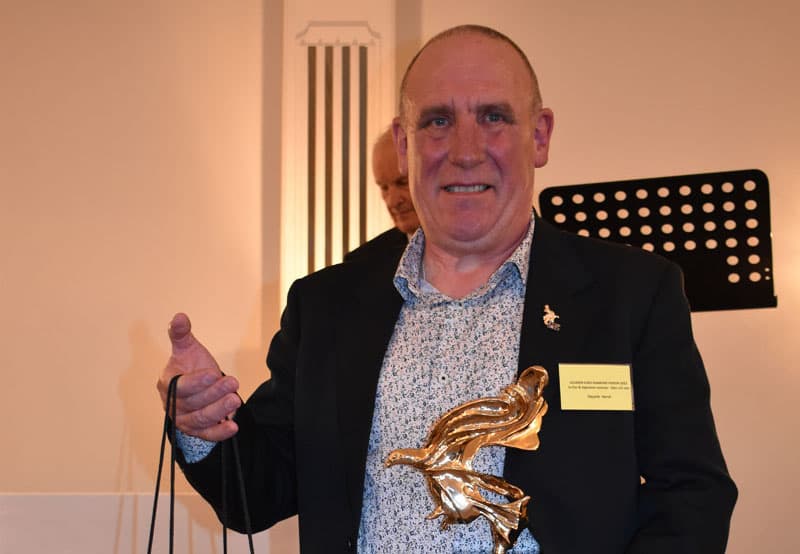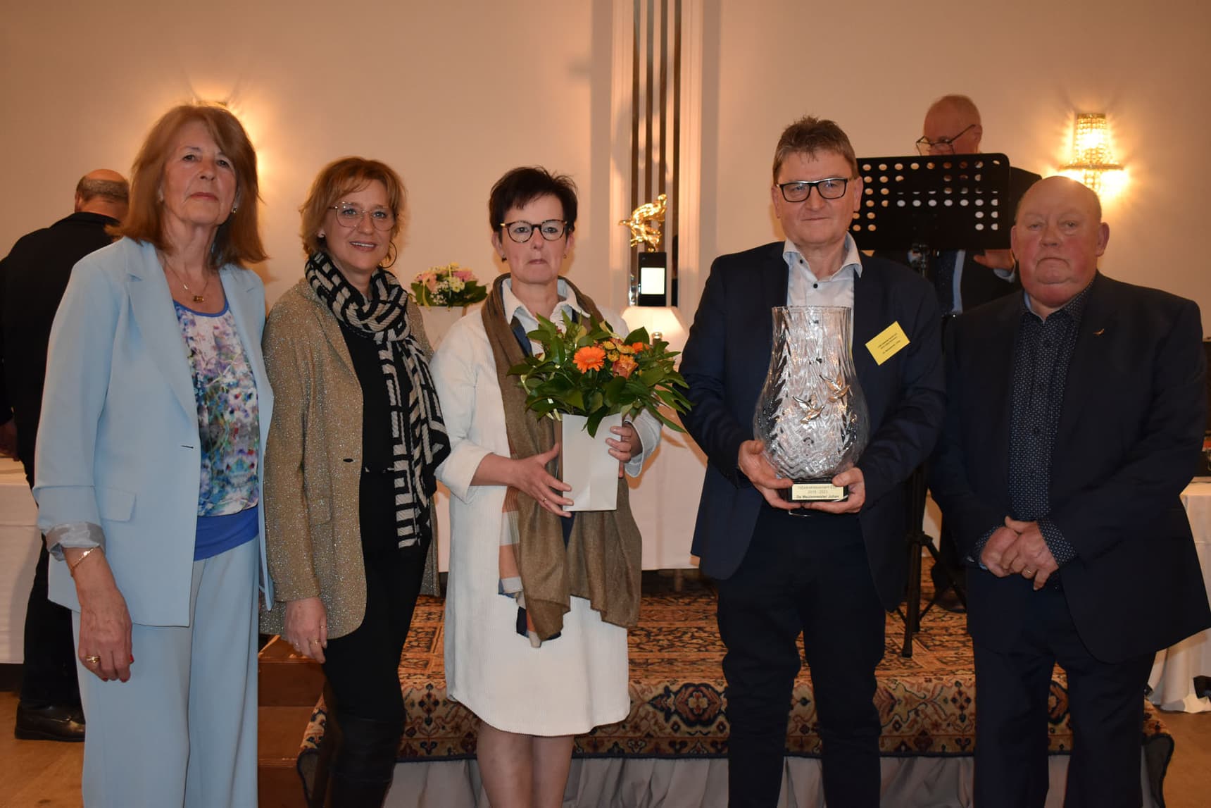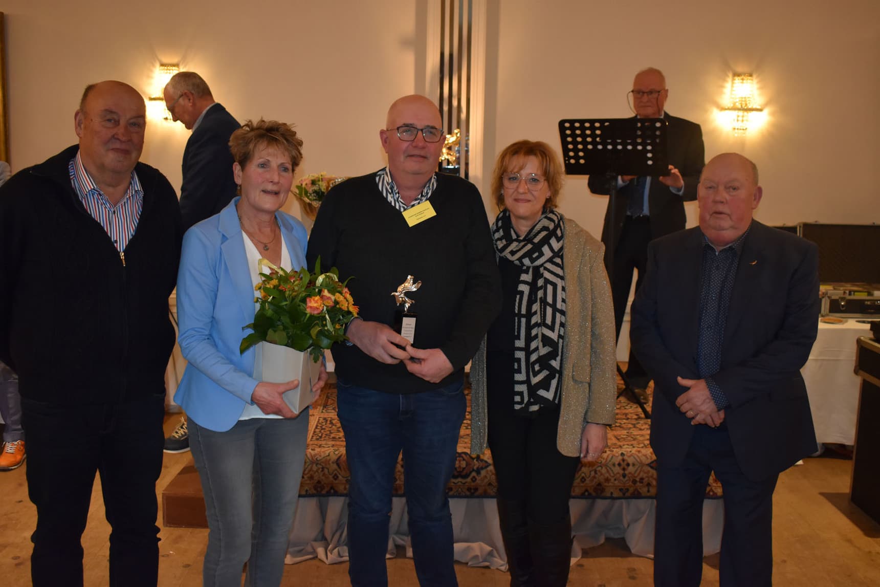 • De grote winnaar was Hervé Noyelle uit Preures ( Frankrijk) die met de 4e prijs internationaal op Pau amper 0,1800% behaalde. Hiermee won hij ondermeer de Gouden Euro Diamond Pigeon Trophy met 1e geklasseerde op Pau, alsook de Gouden Euro Diamond Speld geschonken door Peter Wijnants ( het “Gouden Schip” – Oostende). Deze grote Franse fondkampioen werd ook als “Man van het jaar “ 2023 afgevlagd en won hierbij o.a. de Ereprijs Bricon welke werd overhandigd door de heer Bart Houfflyn.