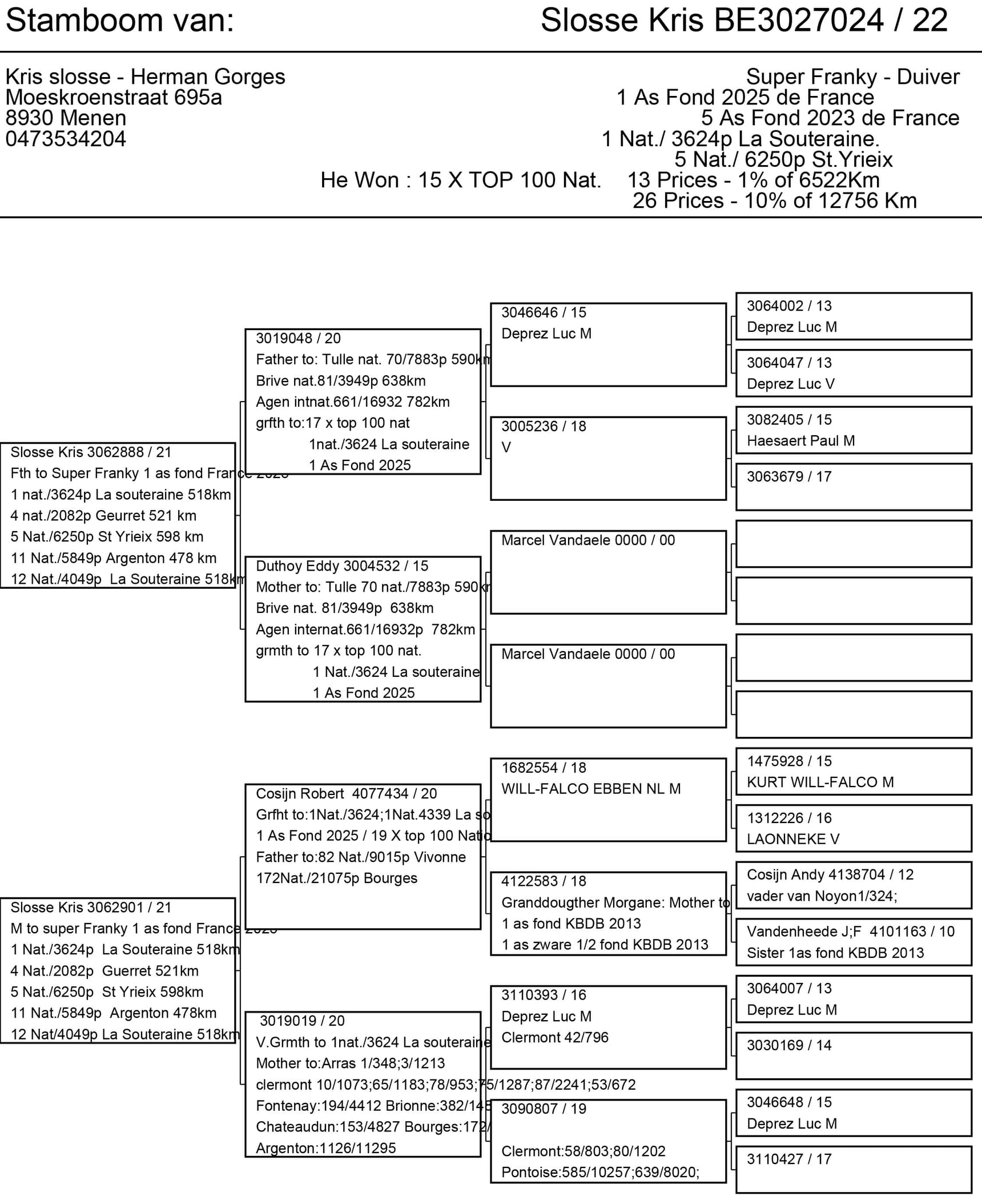 Georges Herman en Kris Slosse, gefeliciteerd met jullie briljante resultaten van de afgelopen jaren. We zullen ongetwijfeld meer over dit hok horen in 2026, gezien de kwaliteit van de duiven die we hebben mogen hanteren.