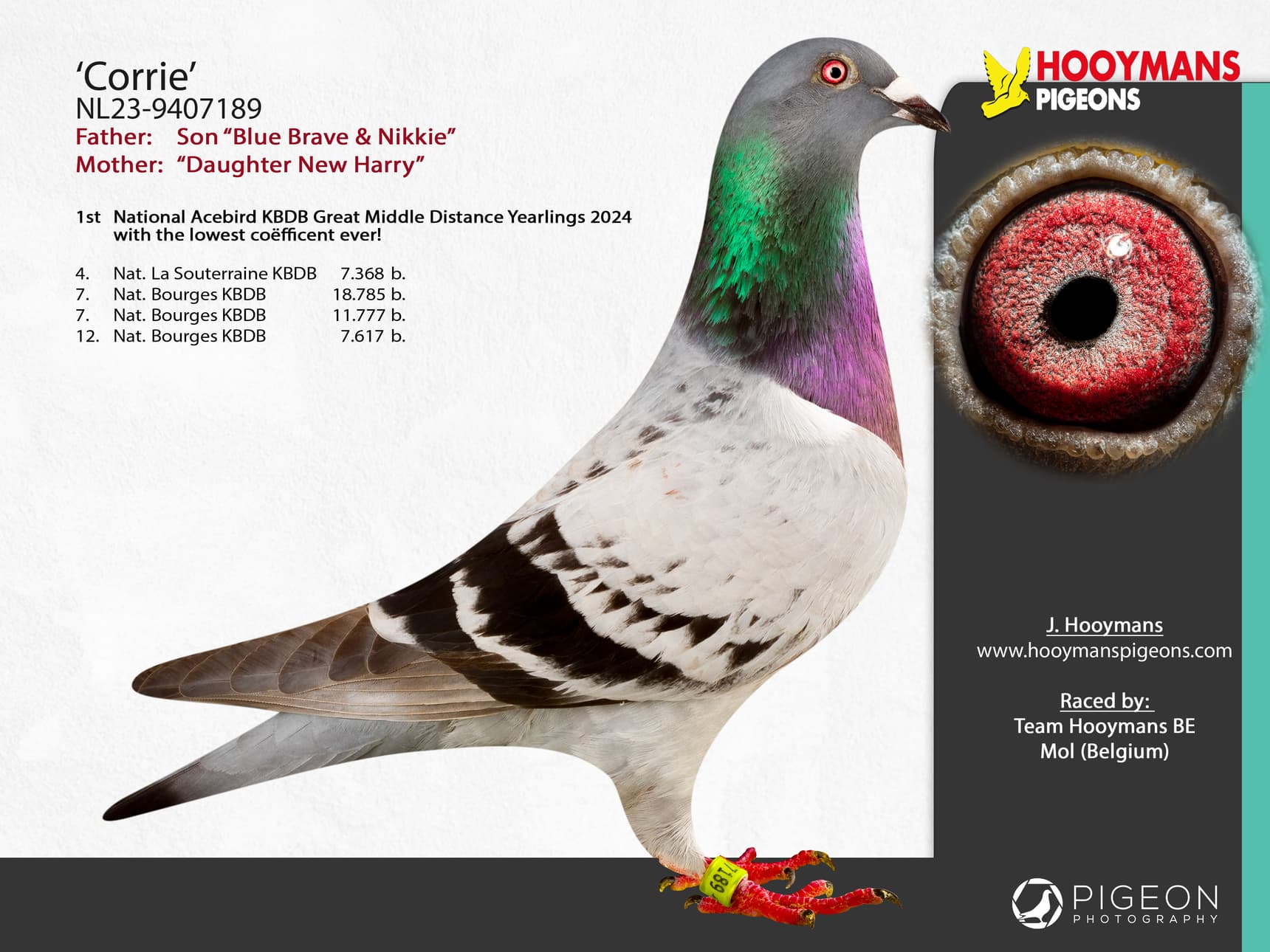 In het vliegseizoen is het bijna een zekerheid dat je richting Mol moet rijden voor een nationale overwinning. Zo een hoog niveau wordt er hier gehaald waardoor het geen zekerheid is natuurlijk maar er wordt wel gestreefd naar heel goed spelen. De kolonie Team Hooymans.Be wordt hier in Mol geleid door Gregory Bekaert die carte blanche krijgt van zijn “baas” Jan Hooymans. De prestaties zijn gewoonweg fantastisch. Dat was opnieuw het geval in 2024 waar hij 1ste Nationaal Argenton won met een topdoffer en het seizoen mocht afsluiten met een geweldige crackduivin “Corrie”. Zij werd 1ste Nat Asduif zware halve fond jaarse KBDB 2024 met een ontzettend laag coëfficiënt dat nog nooit eerder was bij elkaar gevlogen. Ze won 4 x TOP 12 Nationaal en deze 12de prijs had nog beter gekund als ze bij het thuiskom vlot naar binnen had gegaan. We stellen daarom graag deze kolonie aan jullie voor.