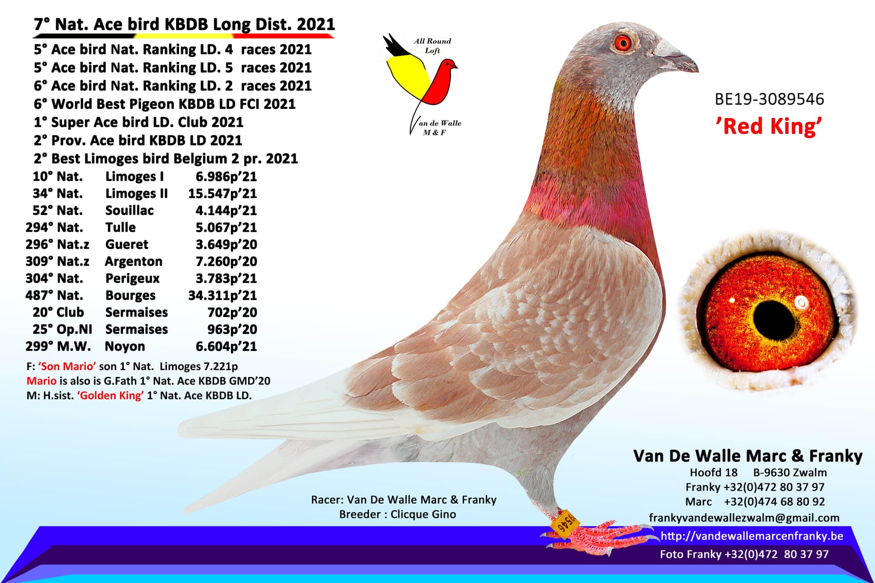 “Red King” 3 x TOP 55 Nationaal en 7de Nationale Asduif fond KBDB 2021