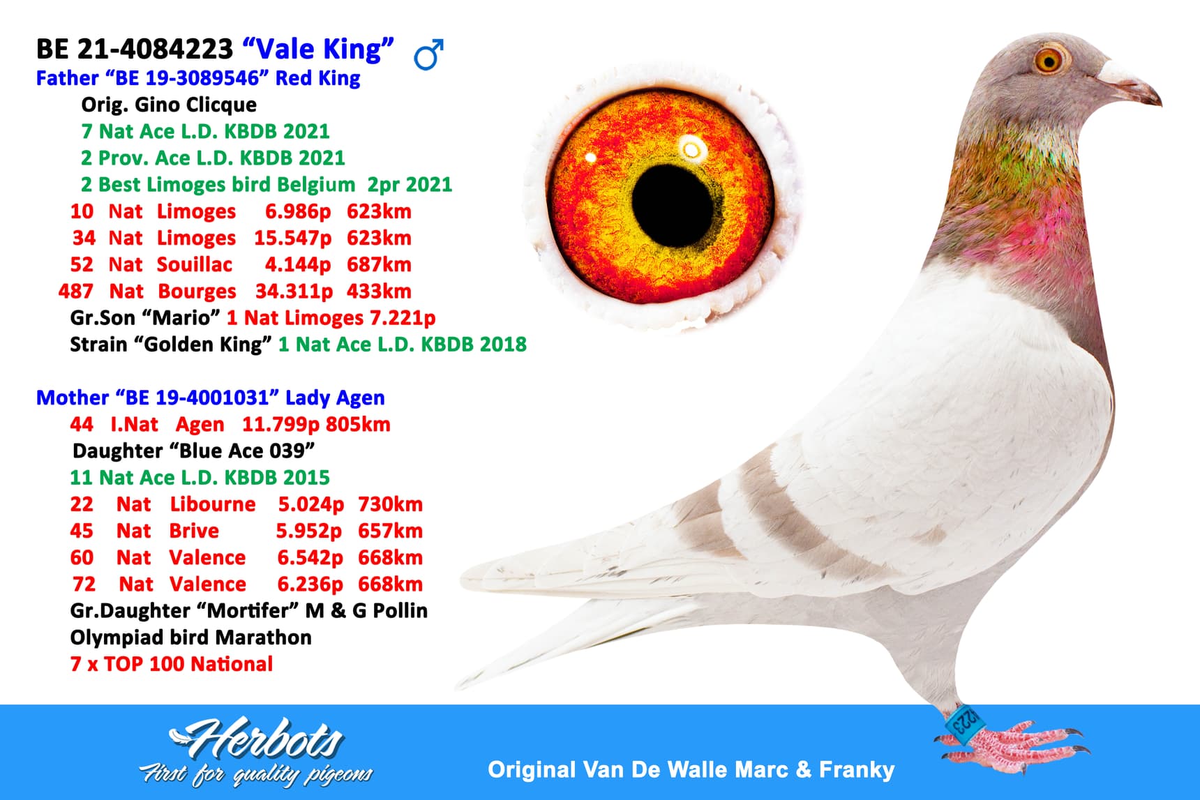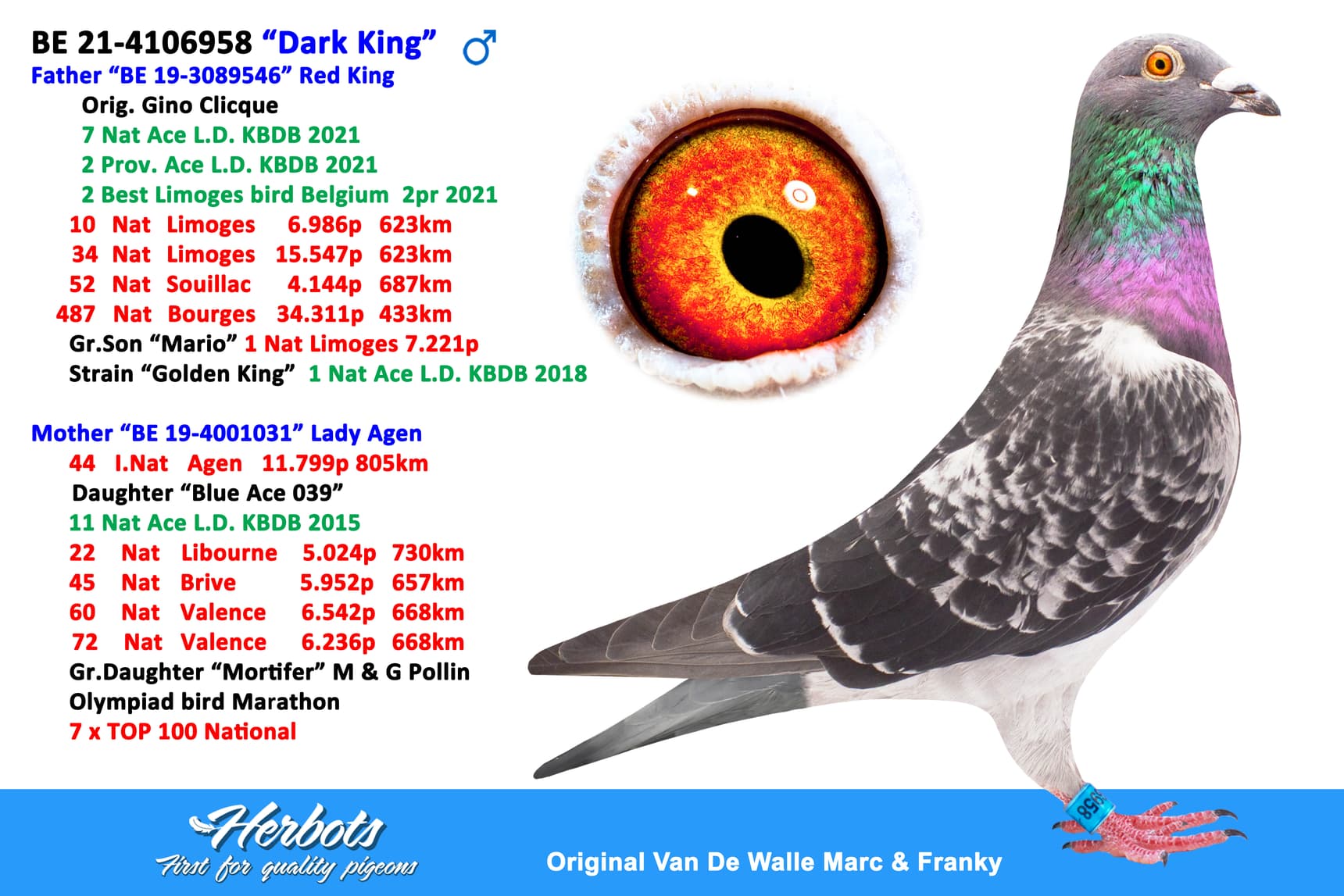 Hij schitterde in 2021 met 10de Nationaal Limoges 6.986d, 34ste Nationaal Limoges 15.547d en 52ste Nationaal Souillac 4.144d. Hierdoor werd hij 7de Nationale Asduif fond KBDB 2021.