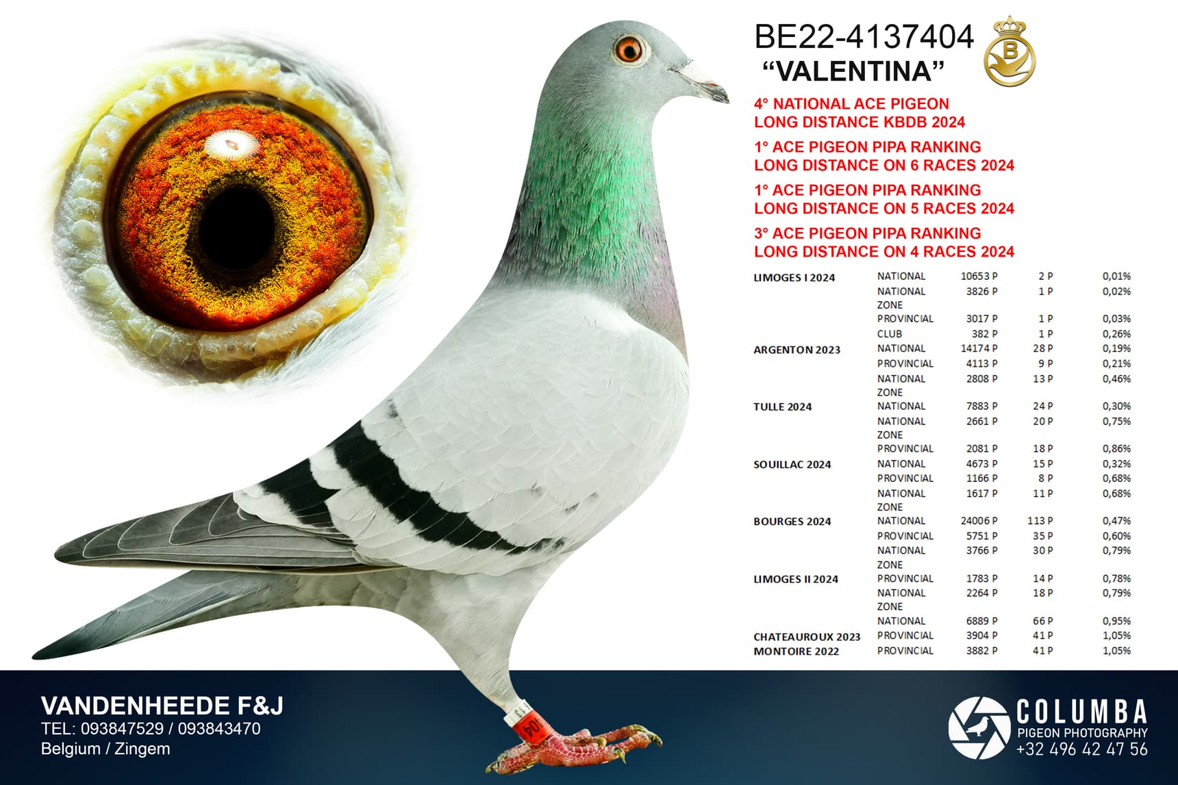 - Beste duif op 6 nationale fonswedstrijden met Valentina 22-4137404