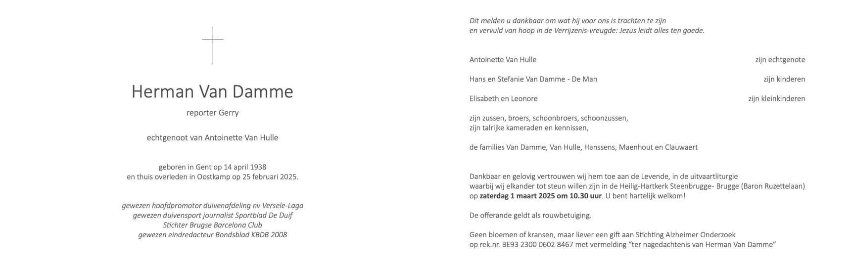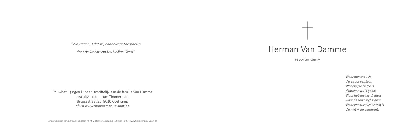 Wij vernemen het overlijden van Herman Van Damme / reporter Gerry.