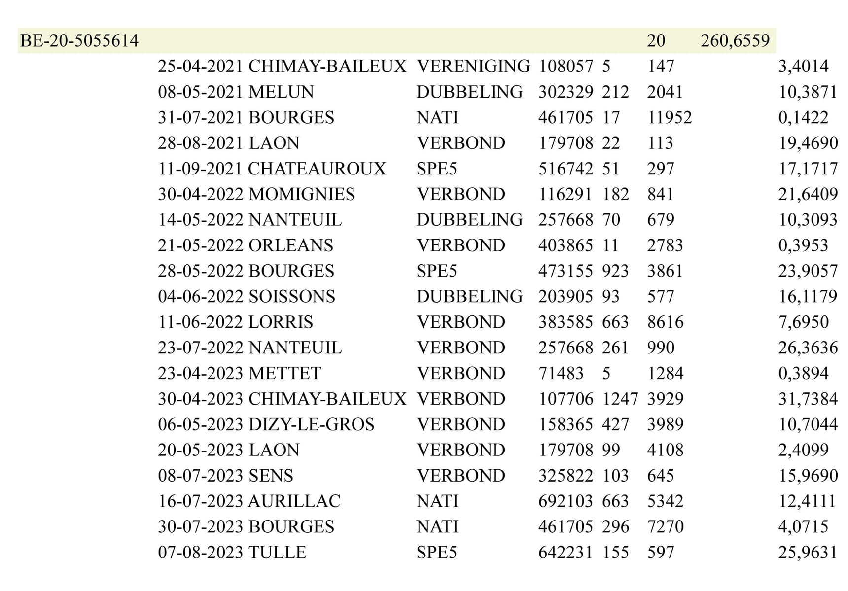 Direct son “B16-2187400” (1st Laon 1,565b. – 3rdSourdun 201b. - 44th Prov. Chevrainvilliers 3,370b.) x “B14-2138867”
