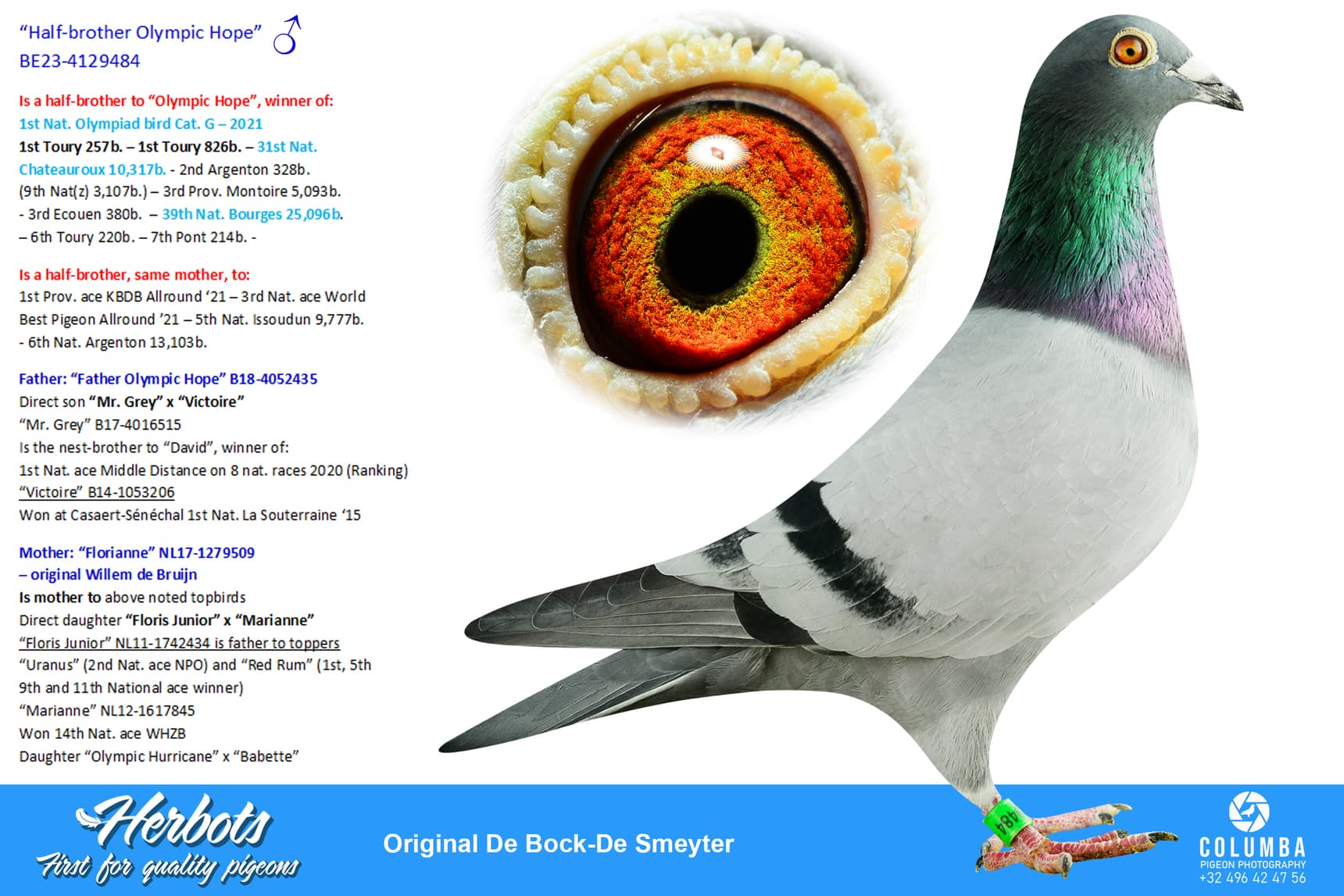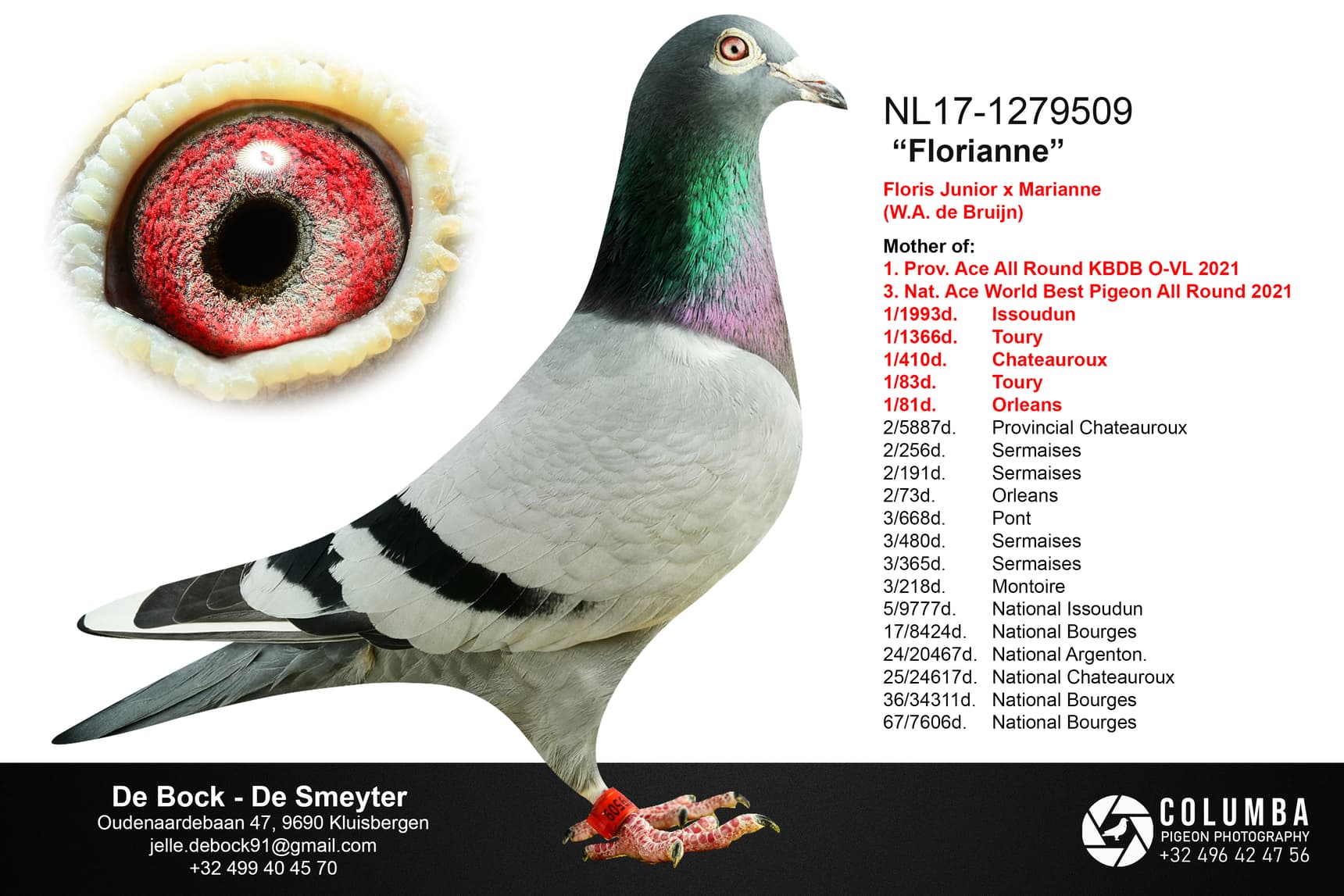 1st Prov. ace KBDB Allround ‘21 – 3rd Nat. ace World Best Pigeon Allround ’21 – 5th Nat. Issoudun 9,777b. - 6th Nat. Argenton 13,103b.