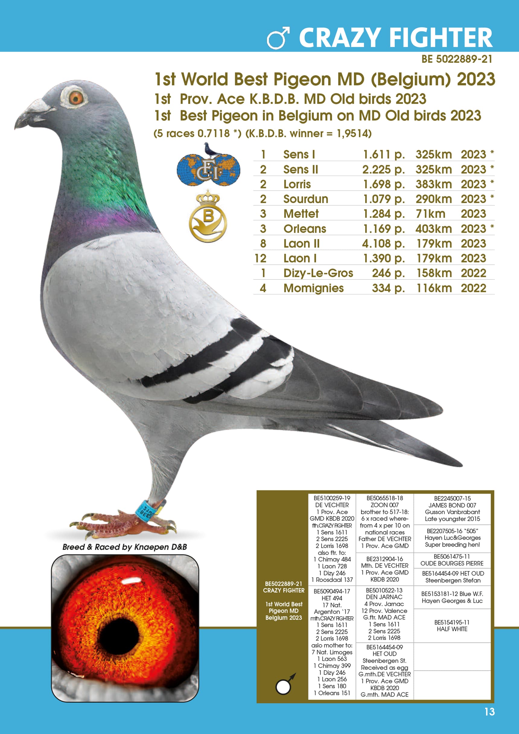 "CRAZY FIGHTER": 1 World best pigeon MD (Belgium) 2023