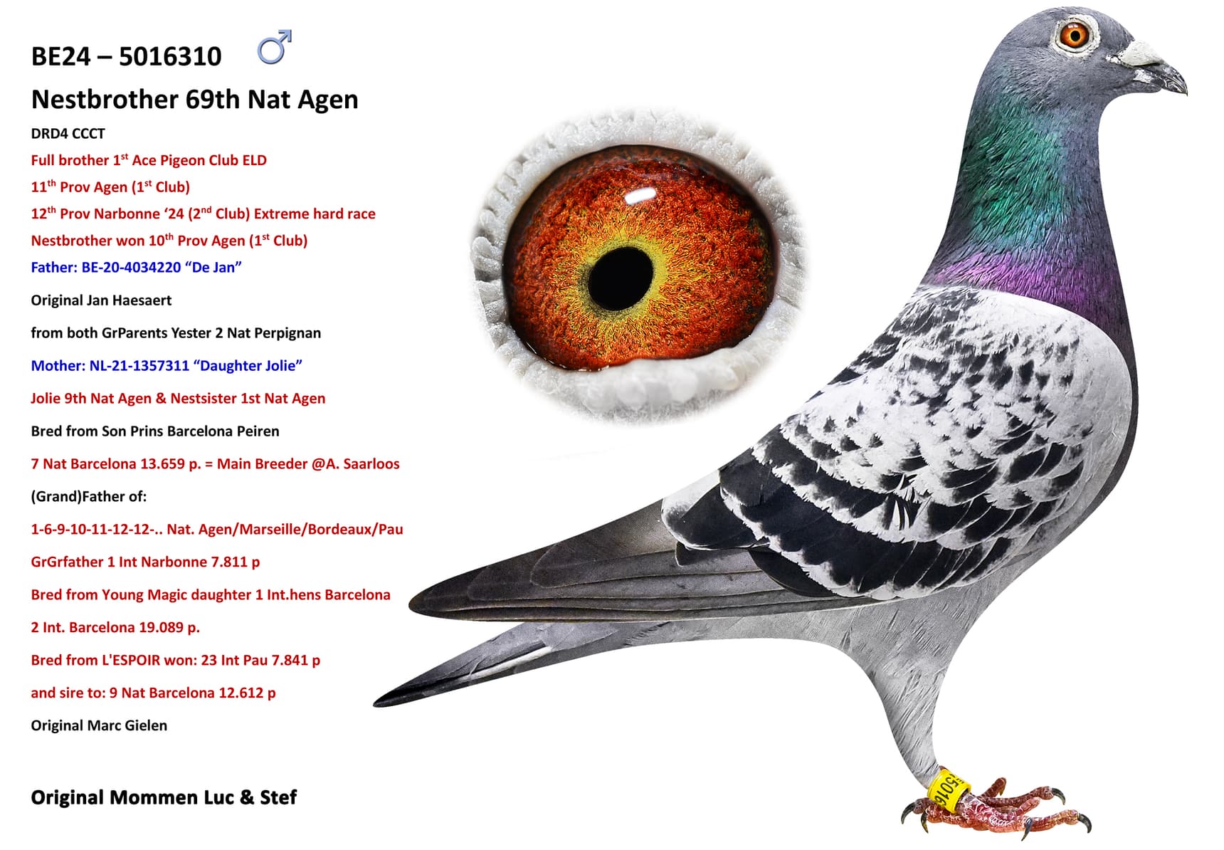 His Nestbrother won 3rd Prov Ace Pigeon Extreme Long Distance and 1st Club Ace Pigeon ELD