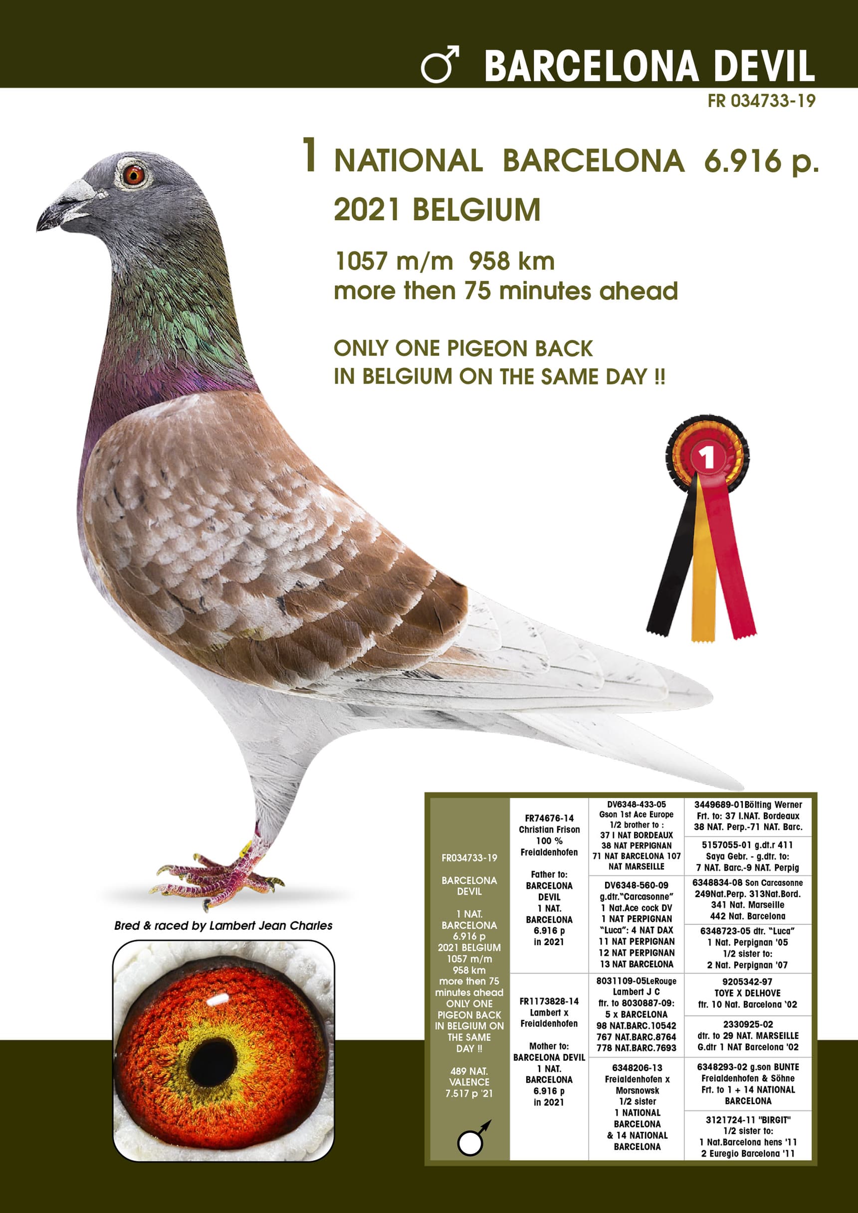 ONLY ONE PIGEON BACK IN BELGIUM ON THE SAME DAY !!