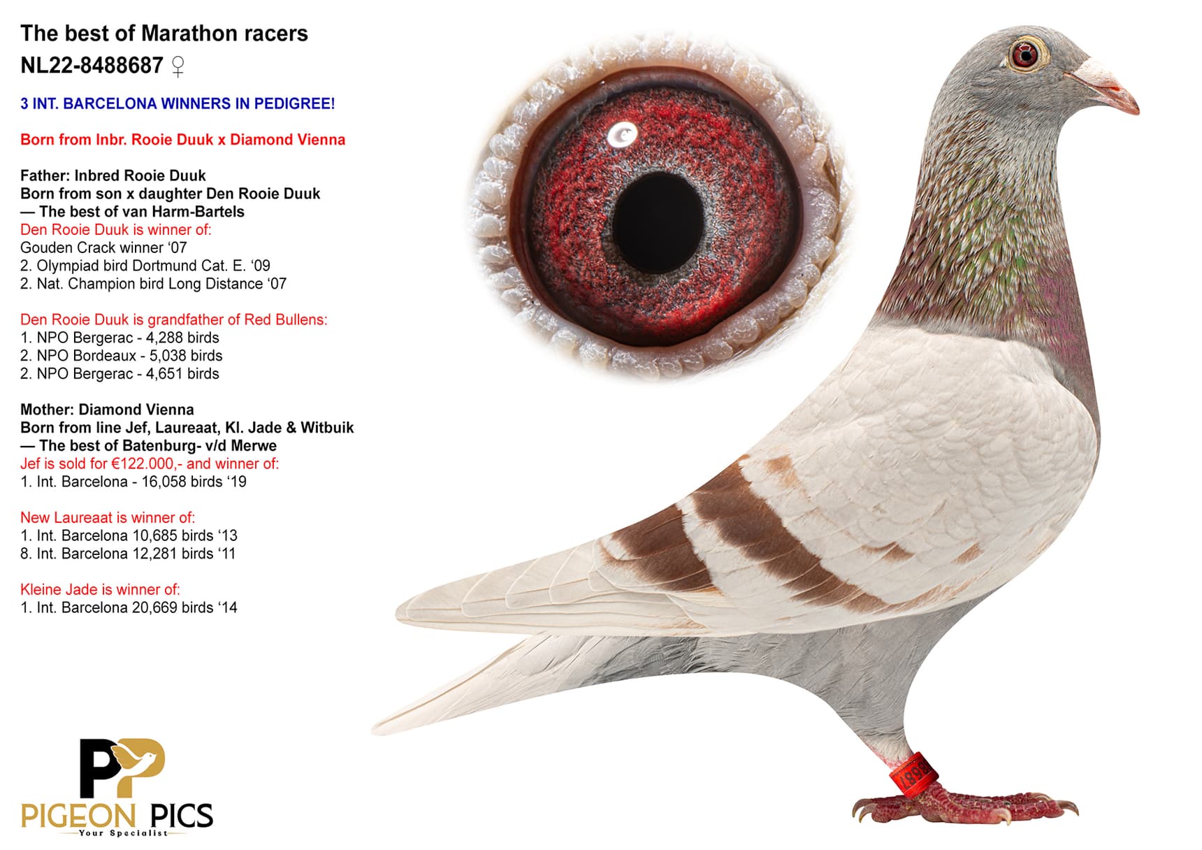 Den Rooie Duuk was just like his grandson Red Bullens a phenomenal racer on the marathon! Also he grew into an absolute legendary breeder in the pigeon sport.