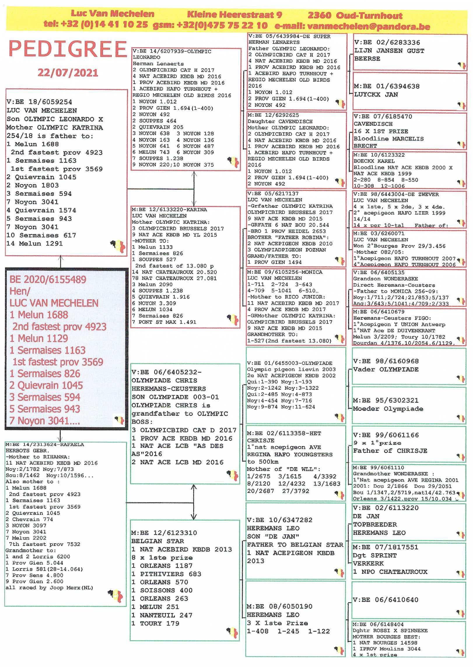 Hereby the pedigree of the first pigeon in the K.B.D.B. ranking catogory 6 races: