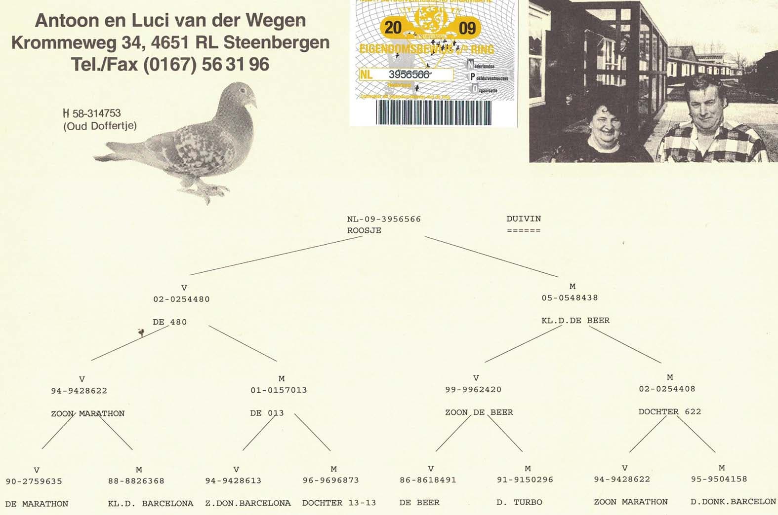 Inbred to “Zoon Marathon”, winner of 40th Nat. Barcelona 7,047b. - 102nd Internat. Barcelona 24,908b. – 89th Nat. Perpignan 3,815b. - 167th Nat. Barcelona 6,290b.