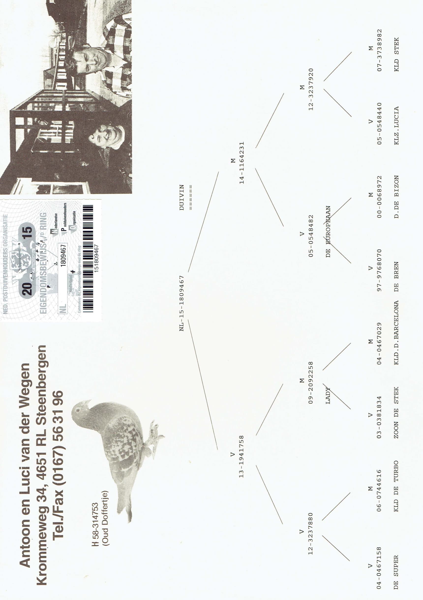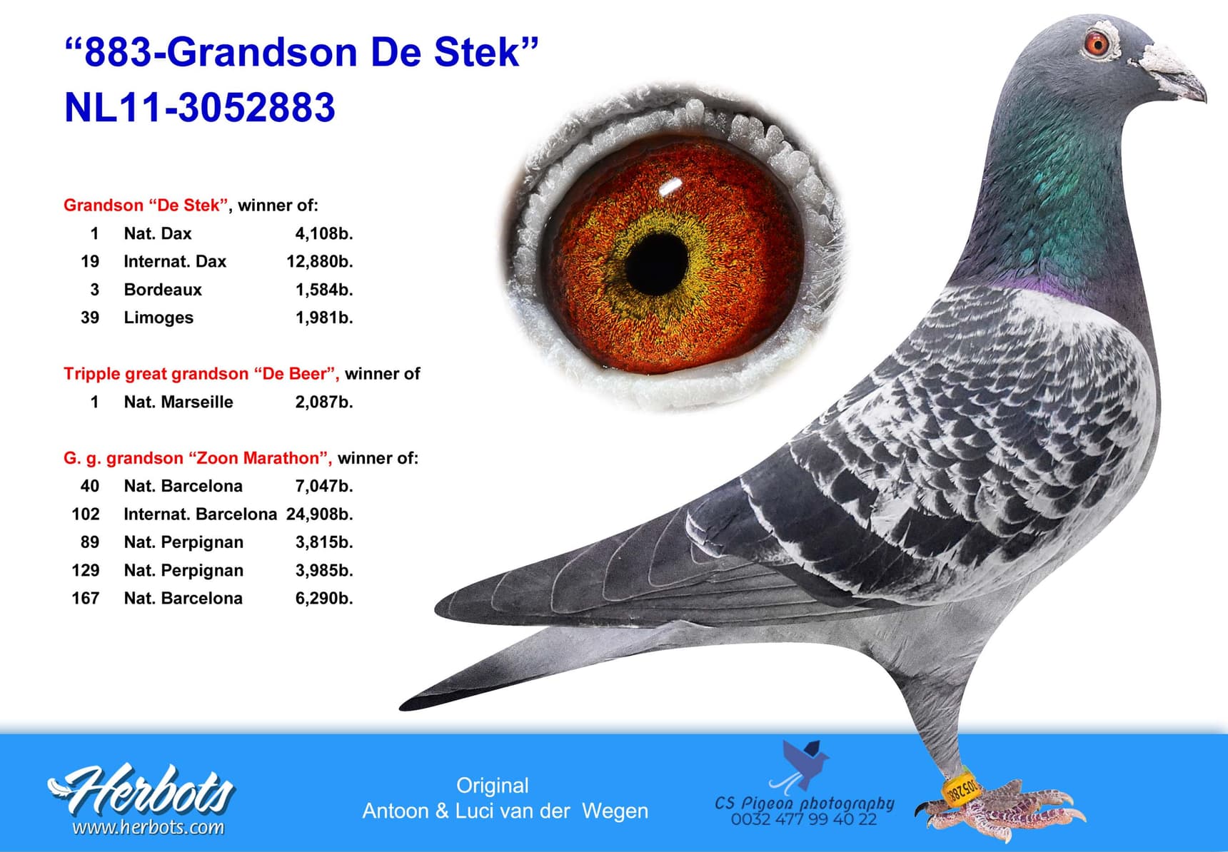Granddaughter “De Europeaan”, winner of 32nd Nat. Barcelona 8,042b. - 79th Internat. Barcelona 27,669b. – 49th Nat. Perpignan 6,507b. – 54th Nat.Barcelona 7,016b.