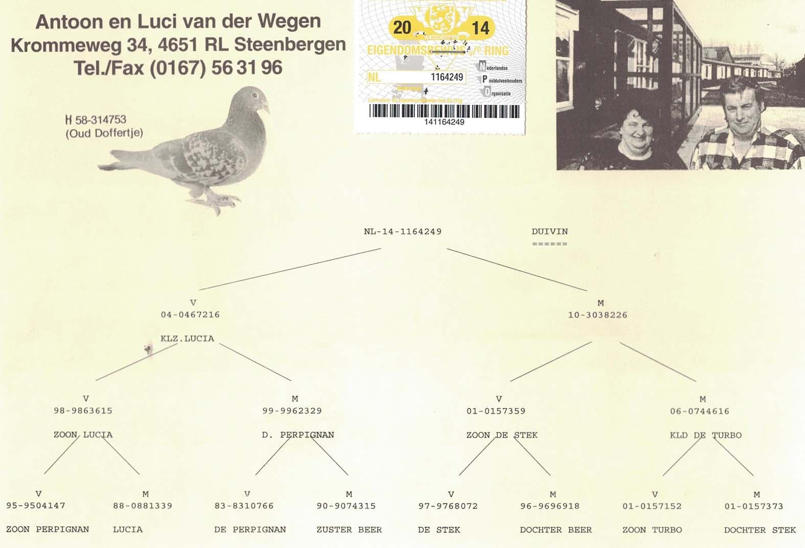 Kweker: 100% VAN DER WEGEN A. & L. 100% 纯范德维根血系