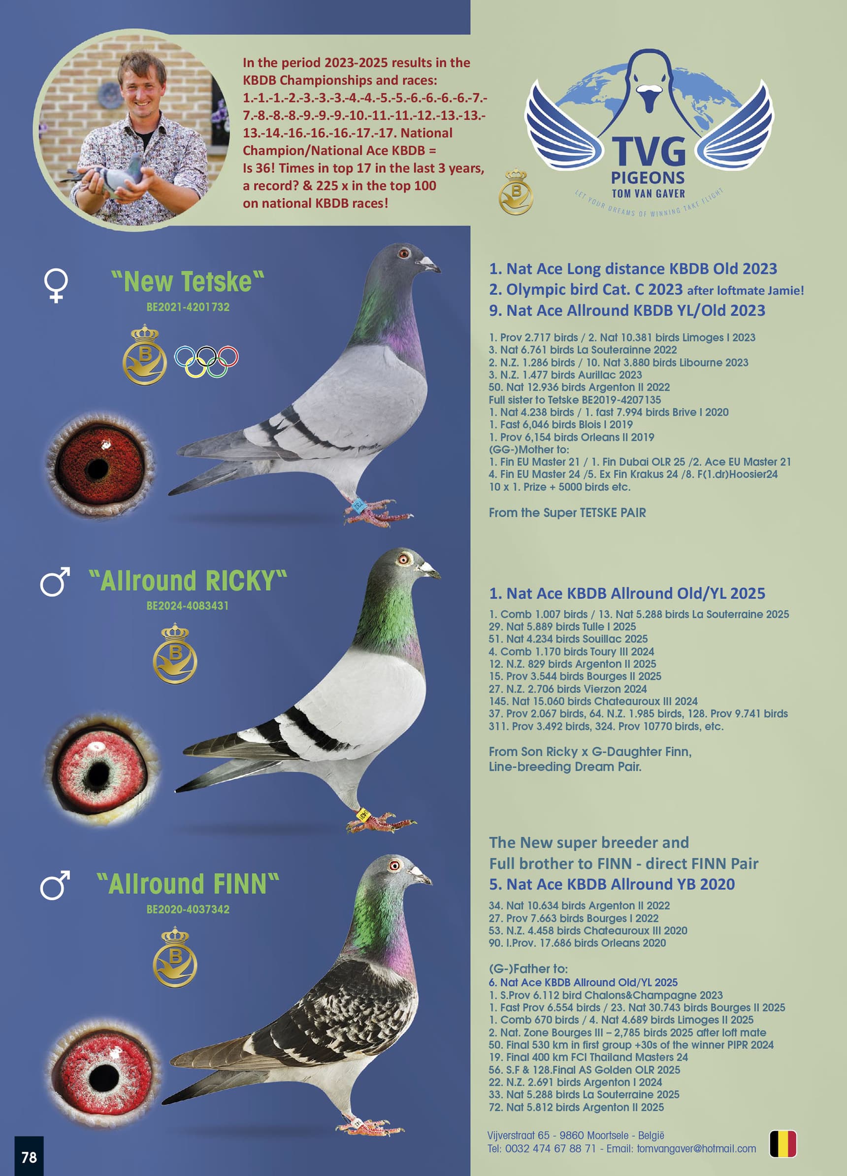 KBDB ’20 - 1st Nat. World Best Pigeon ’22 – 1st Final