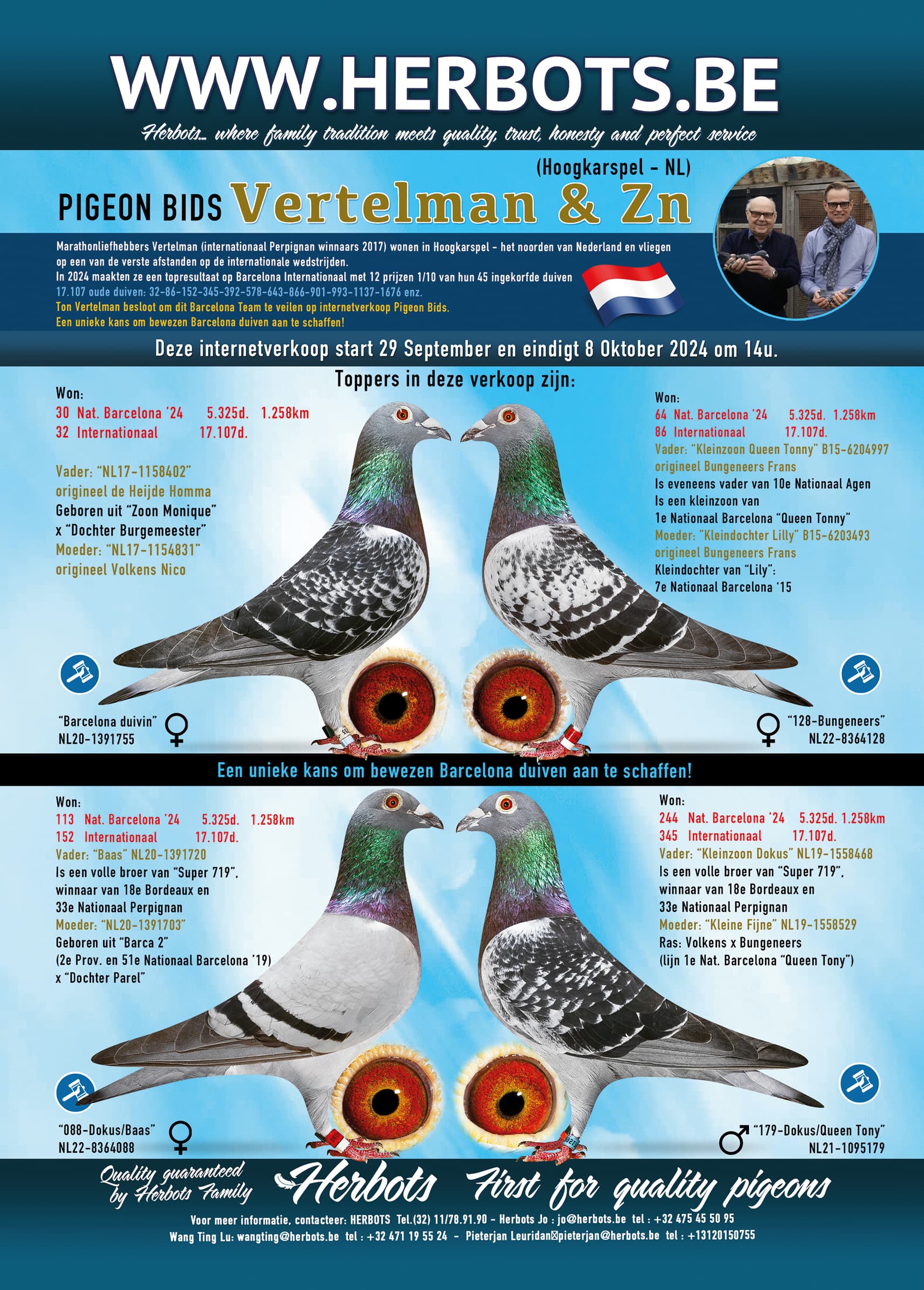 pigeon bids barcelona team 2024 van vertelman & zn (hoogkarspel):