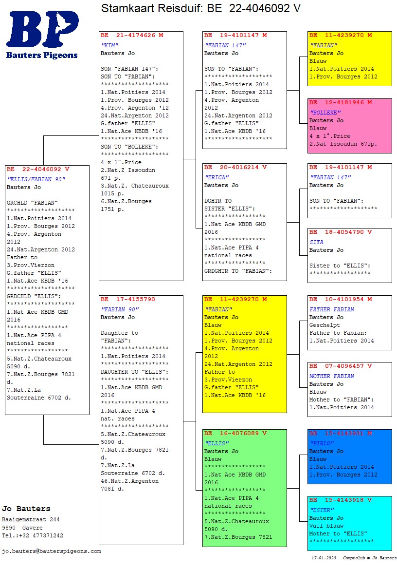 1st nat. ace KBDB YB ’16 - 5th Nat (z) Chateauroux 5,090b. – 7th Nat (z) Bourges 7,821b. - 7th Nat. (z) La Souterraine 6,702b. – 46th Nat (z) Argenton 7,081b.