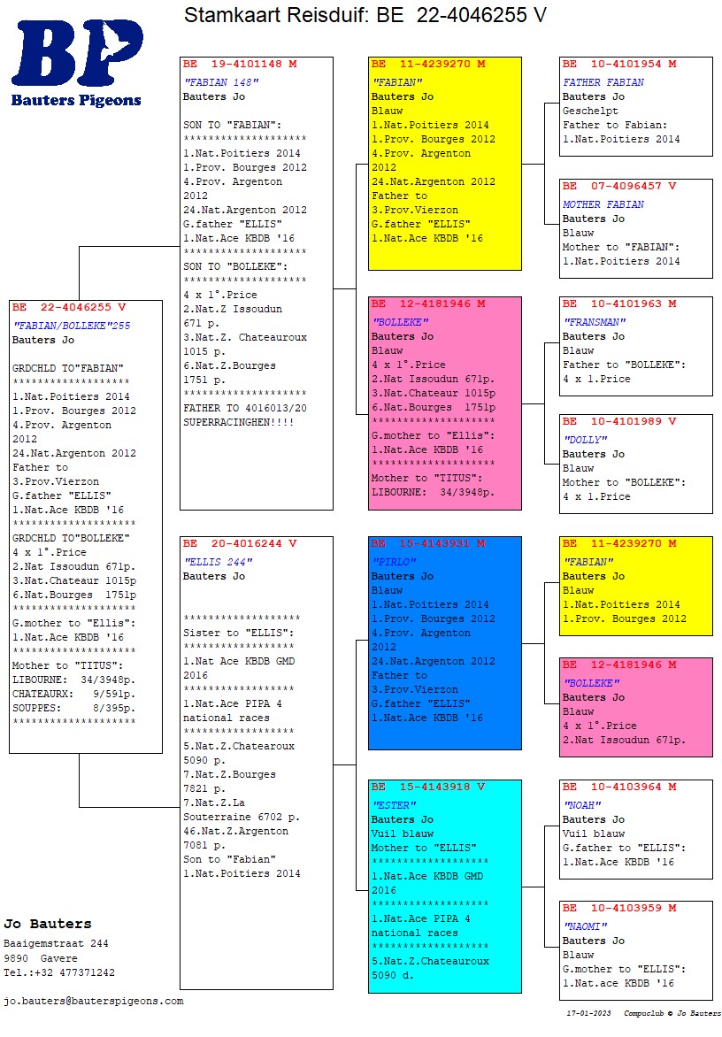 “Eris”: winner of 26th prov. Bourges 4,517b. – 78th Nat. Brive 4,187b.