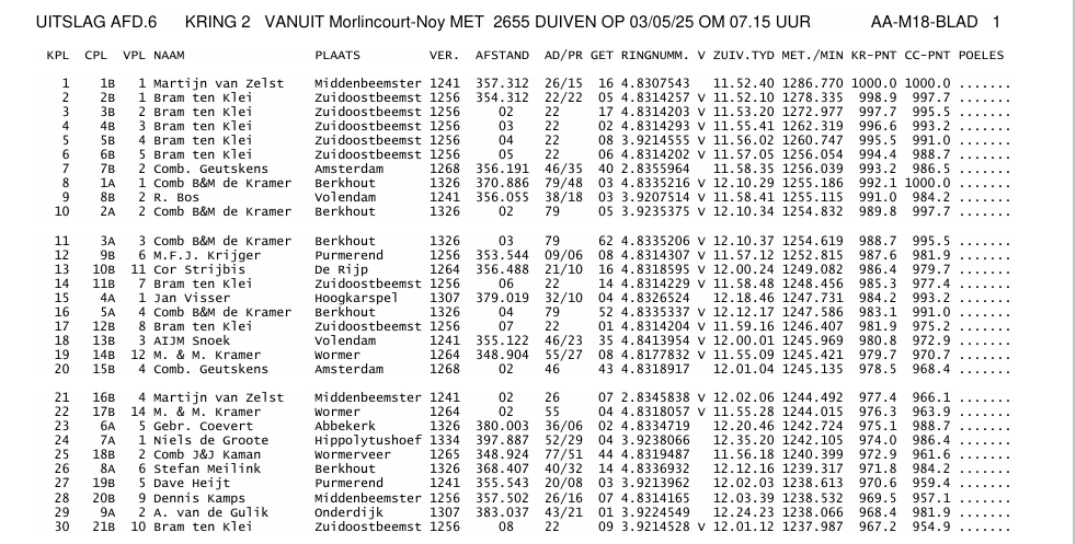 Johan Gijsberts(NL) wint met BLITZ-koppel nazaten o.a.9e NPO Morlincourt 6.496 d.  en 1e regionaal Melun 2.156 d., maar ook de ‘125/23’ die zich in de top asduiven World Best Pigeon klasseerde met o.a. 2/2.156 d. - 3/391 d. – 4/6.735 d. - 9/1.117 d.