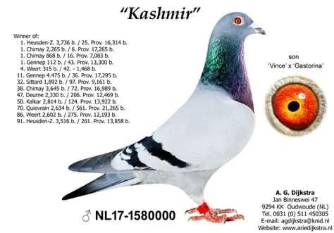 “De Geweldenaar” (een kleinzoon van de BE01-6455003 Olympiade) is bij o.a. Gert-Jan Beute vader van “Damon”7de Nat. Asduif Natoer WHZB 2013. Damon won 3 NPO 10.322d. – 2/12.179d. – 1/3.064 – 1/1.568d. – 1/1.103d. – 1/144 – 2/13.553 – 2/626 – 24/15.762 – 2/809 – 3/1.473 – 4/1.281