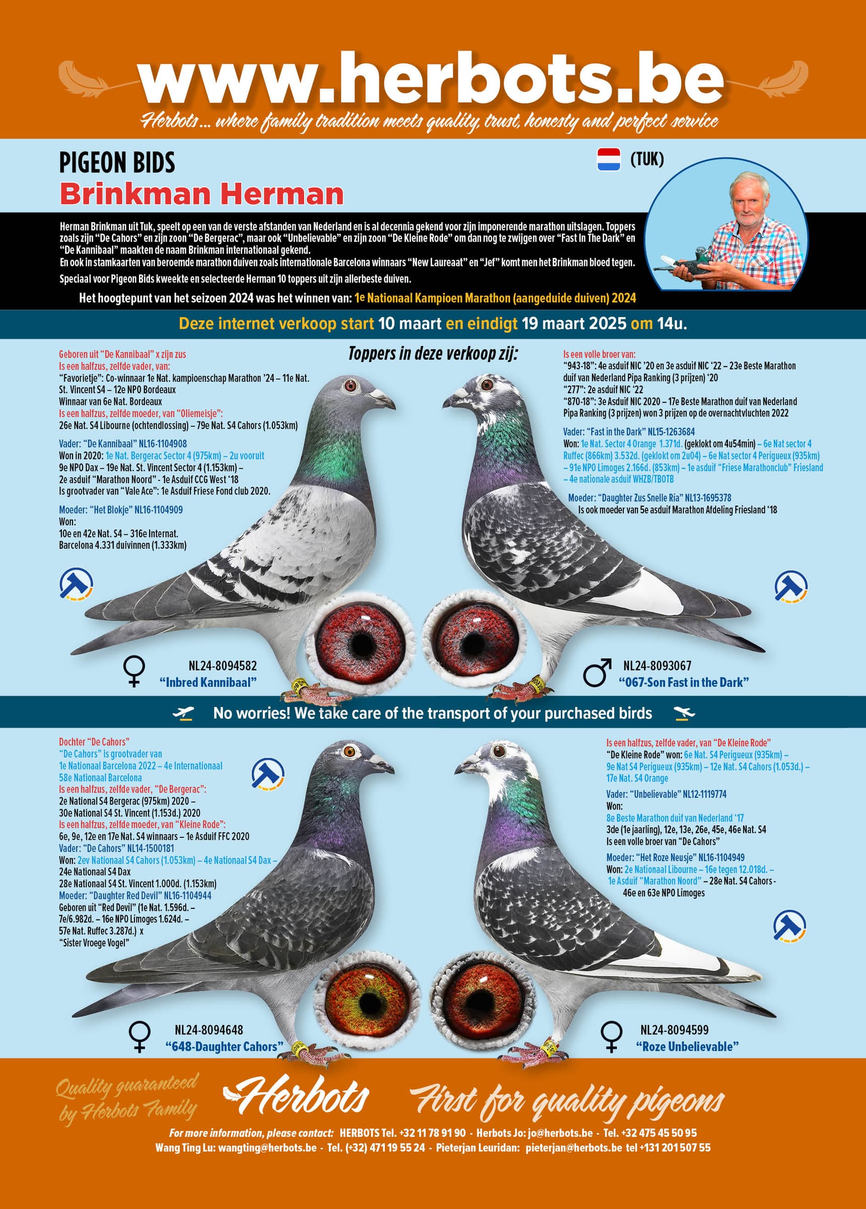 pigeon bids brinkman herman - 1st nat. champion marathon (nominated birds) 2024