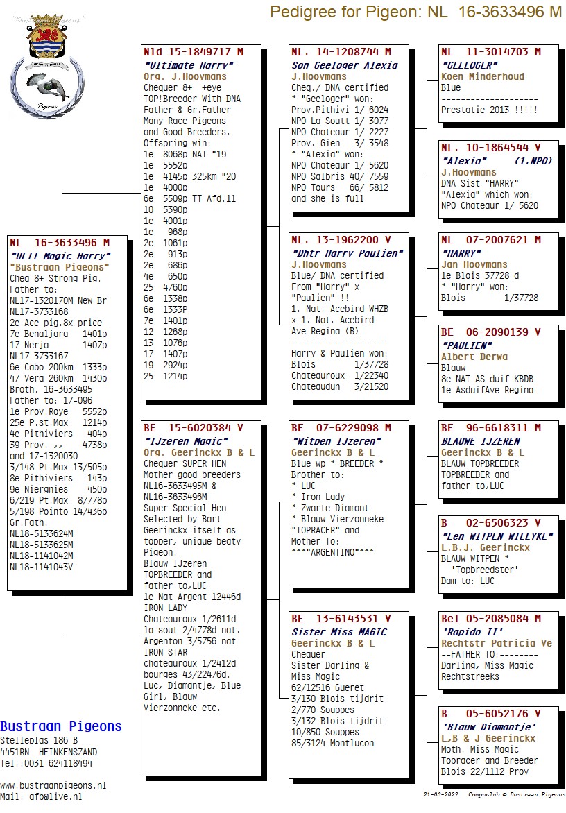 Is a grandson of champion bird “Geeloger” (Minderhoud)