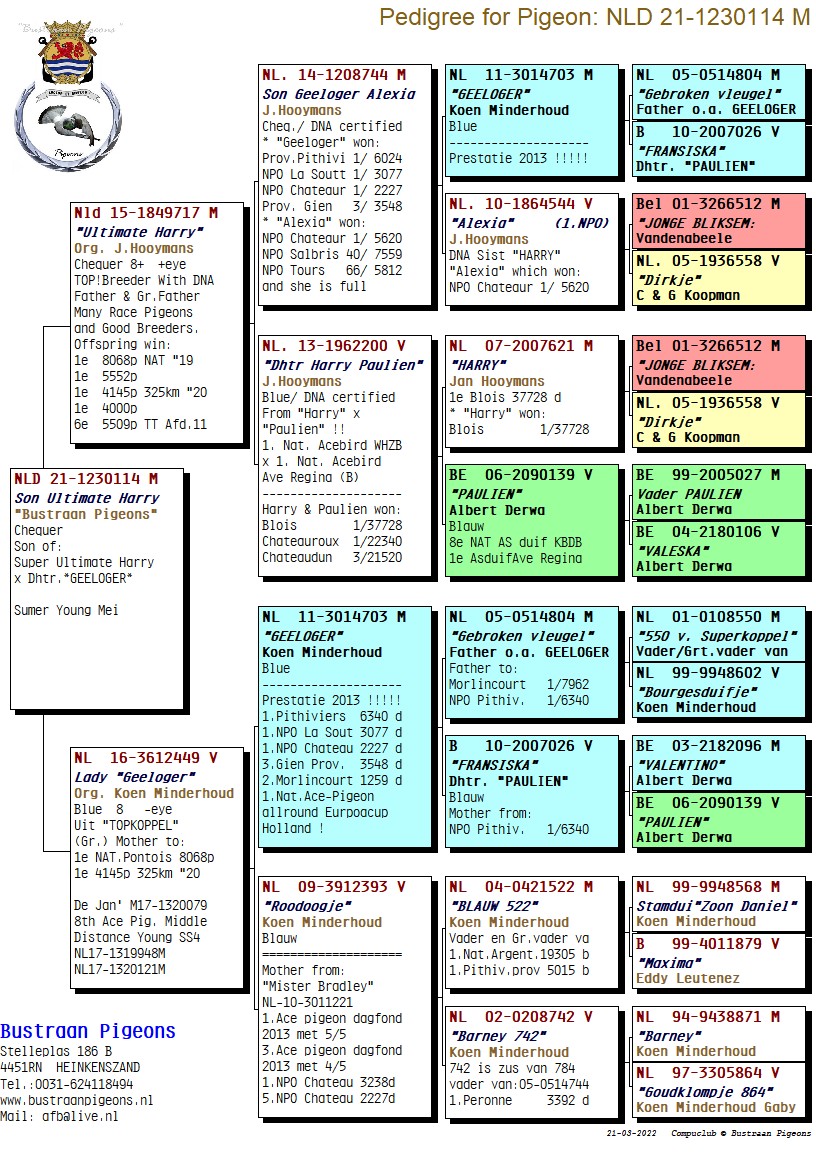 Is a grandson of champion bird “Geeloger” (Minderhoud)
