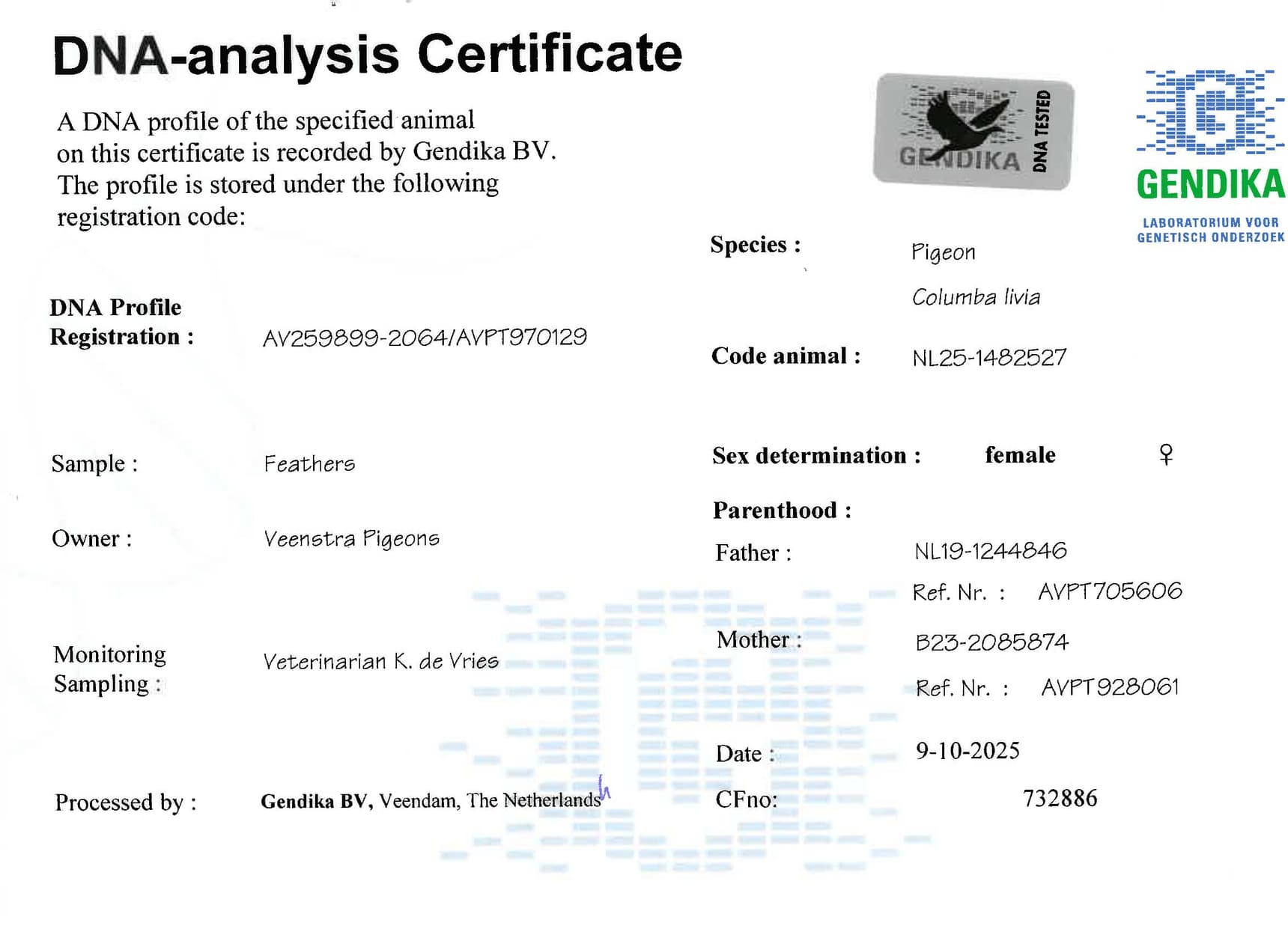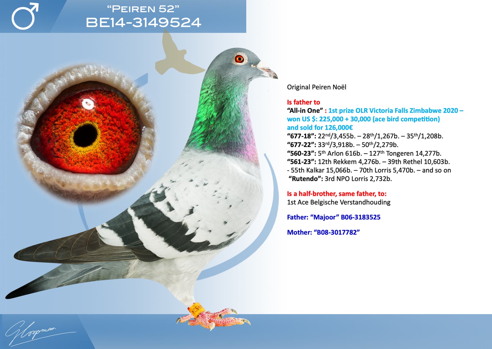 Born out “Peiren 524” (grandson “Kampioen”: 15th Nat.
