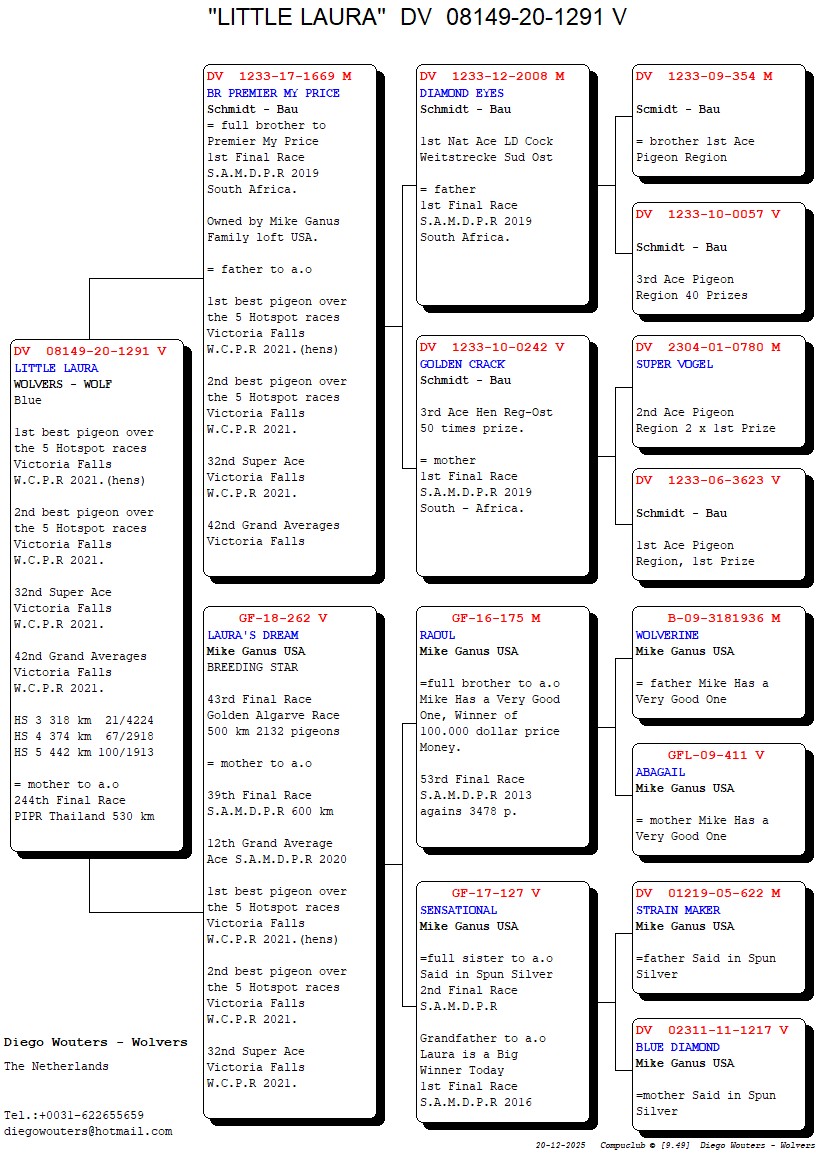 1st Best Pigeon over the 5 Hotspot Races Victoria Falls W.C.P.R. ‘21 (hens)