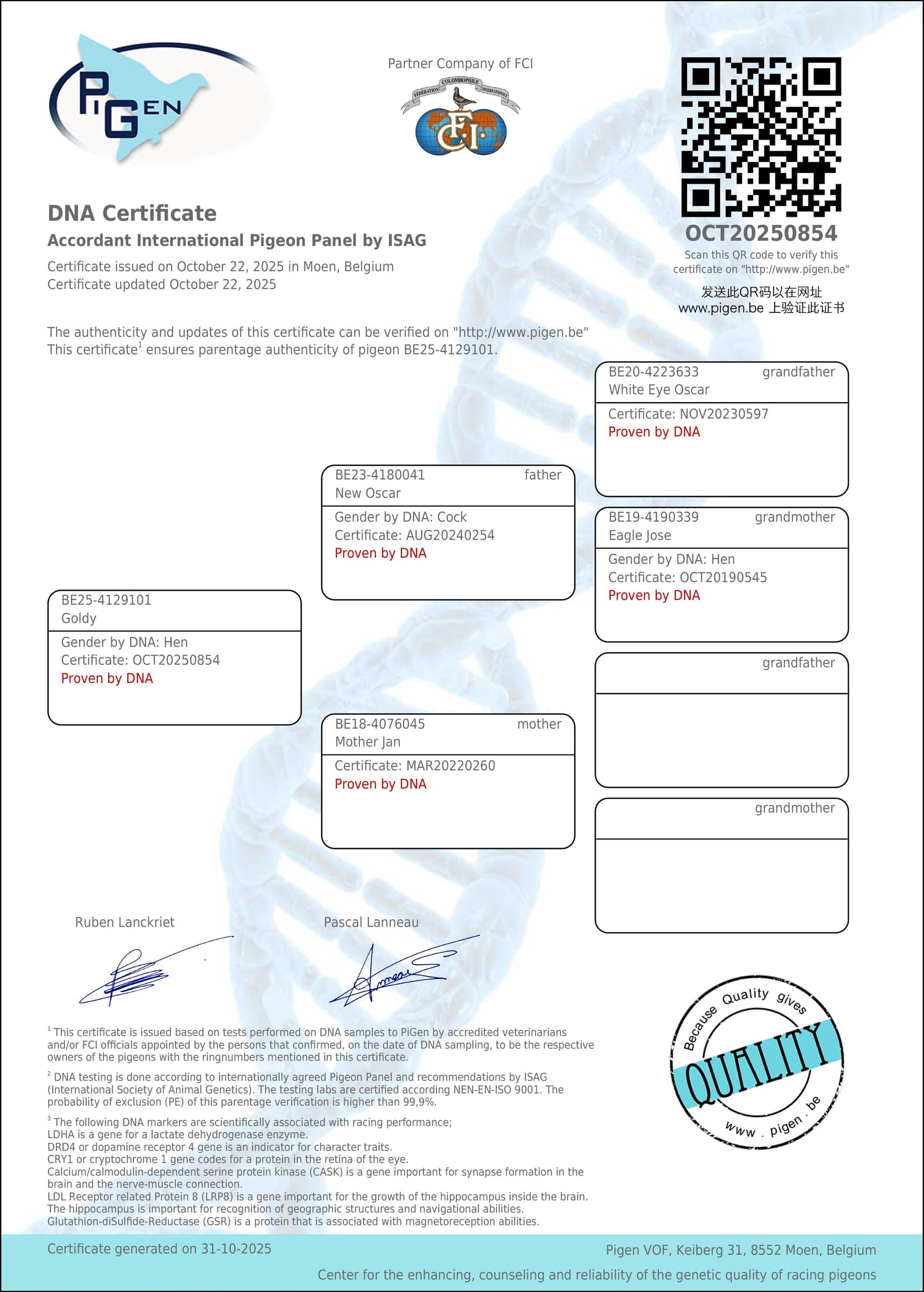 Mother : “Mother Jan” B18-4076045 – original Dobbelaere P.