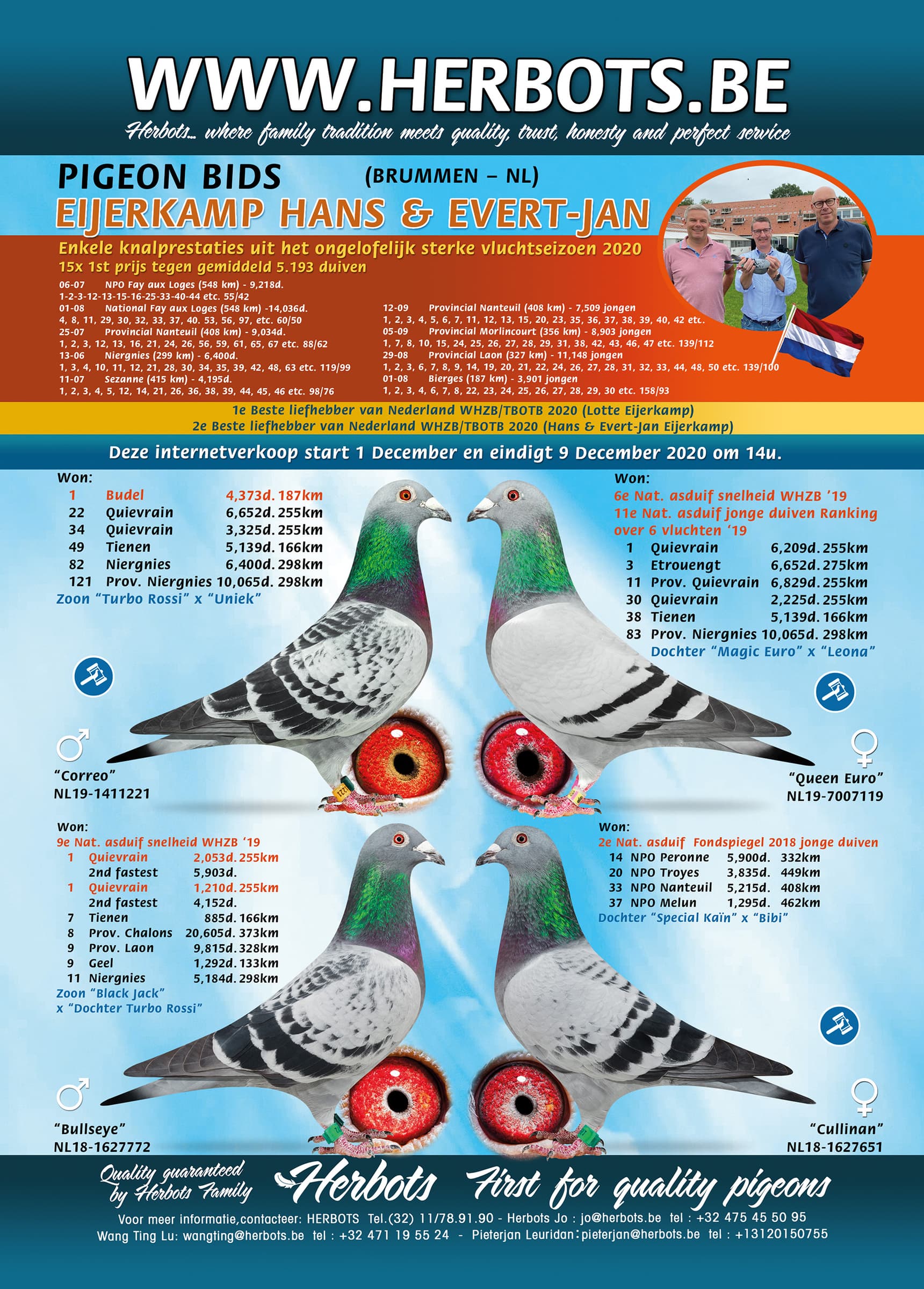 2nd Best fancier of The Netherlands WHZB/TBOTB 2020 (Hans & Evert-Jan Eijerkamp)