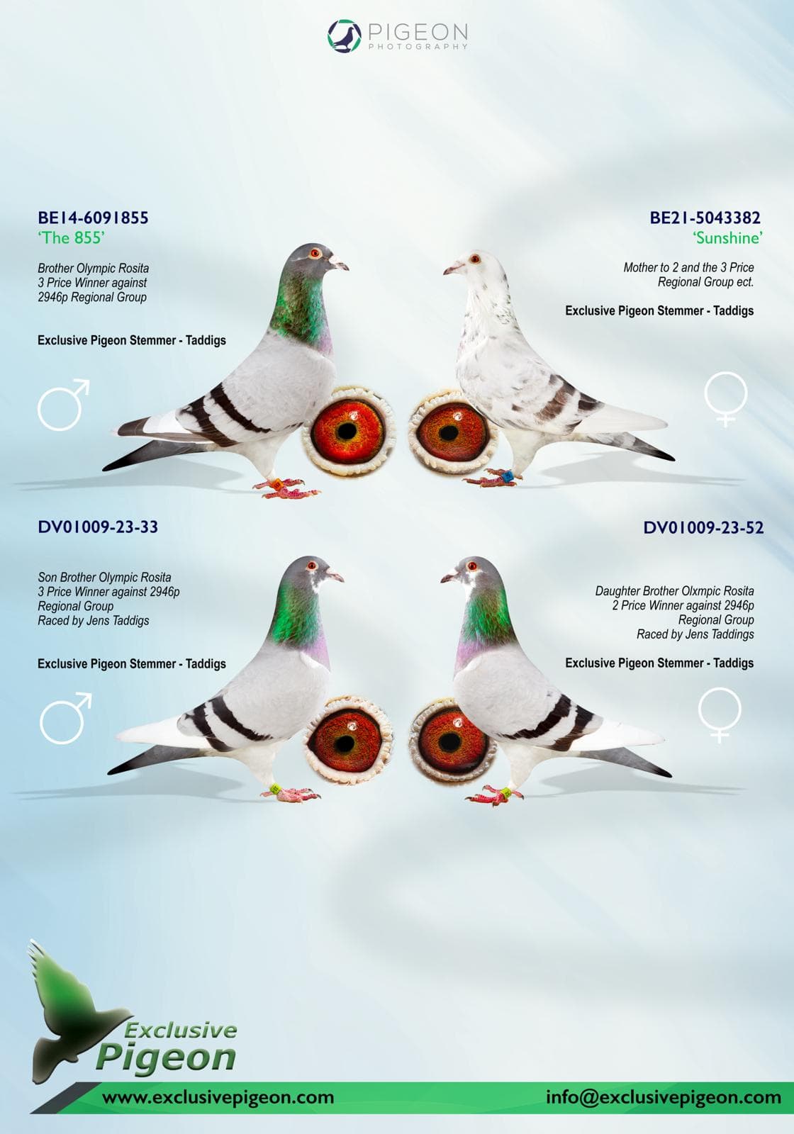 EXCLUSIVE PIGEONBorn out “Brother Olympic Rosita” x “Granddaughter De Goede Rode”