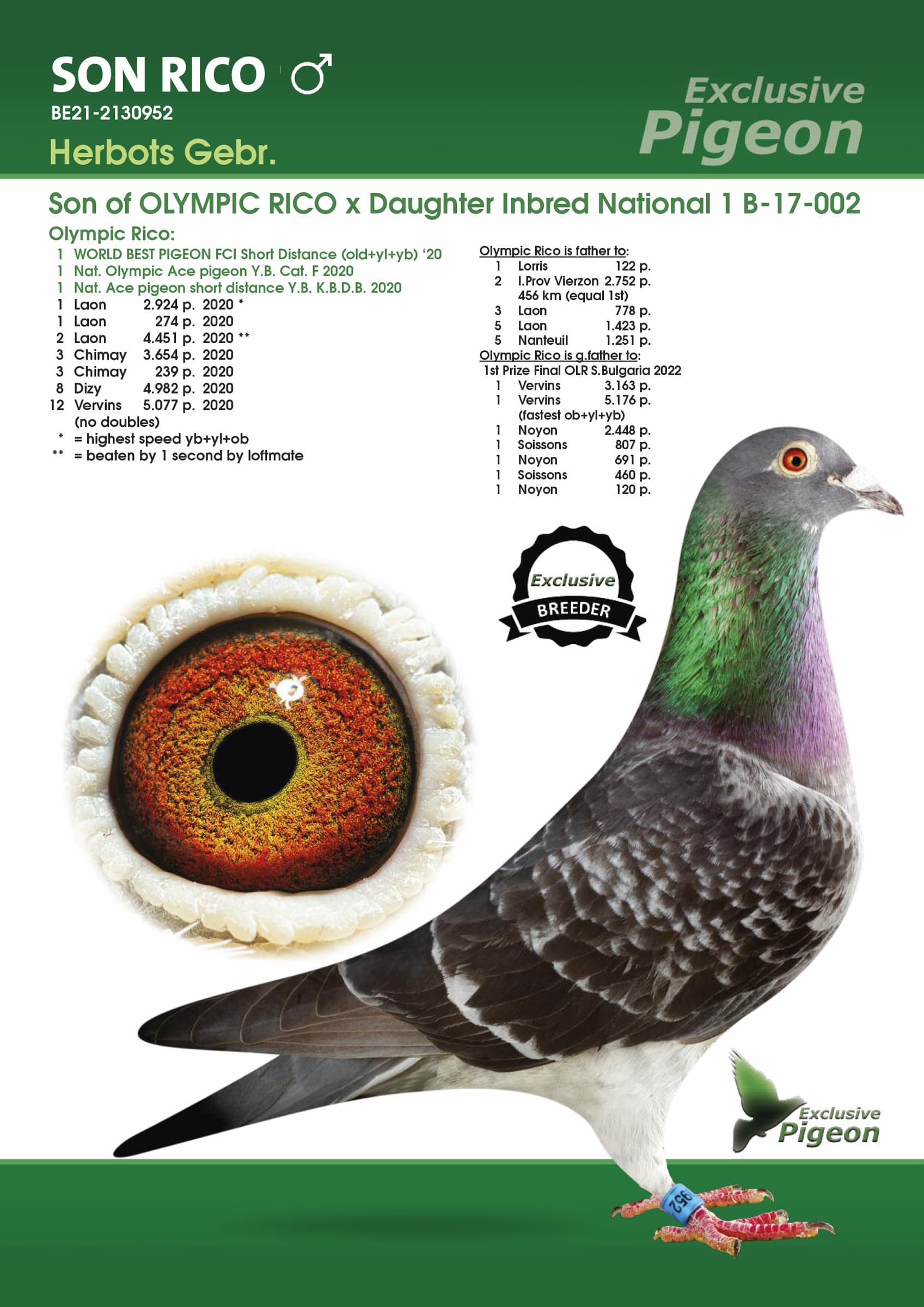 1st Nat. Olympic Ace pigeon Y.B. Cat. F 2020