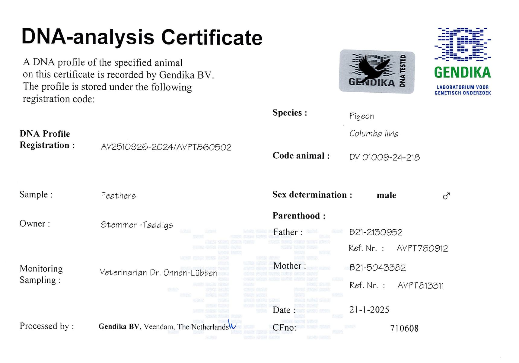 Born out “Zwartkop” x “Laatje 14” (daughter “White Man” x “Mother Olympic Wout”)